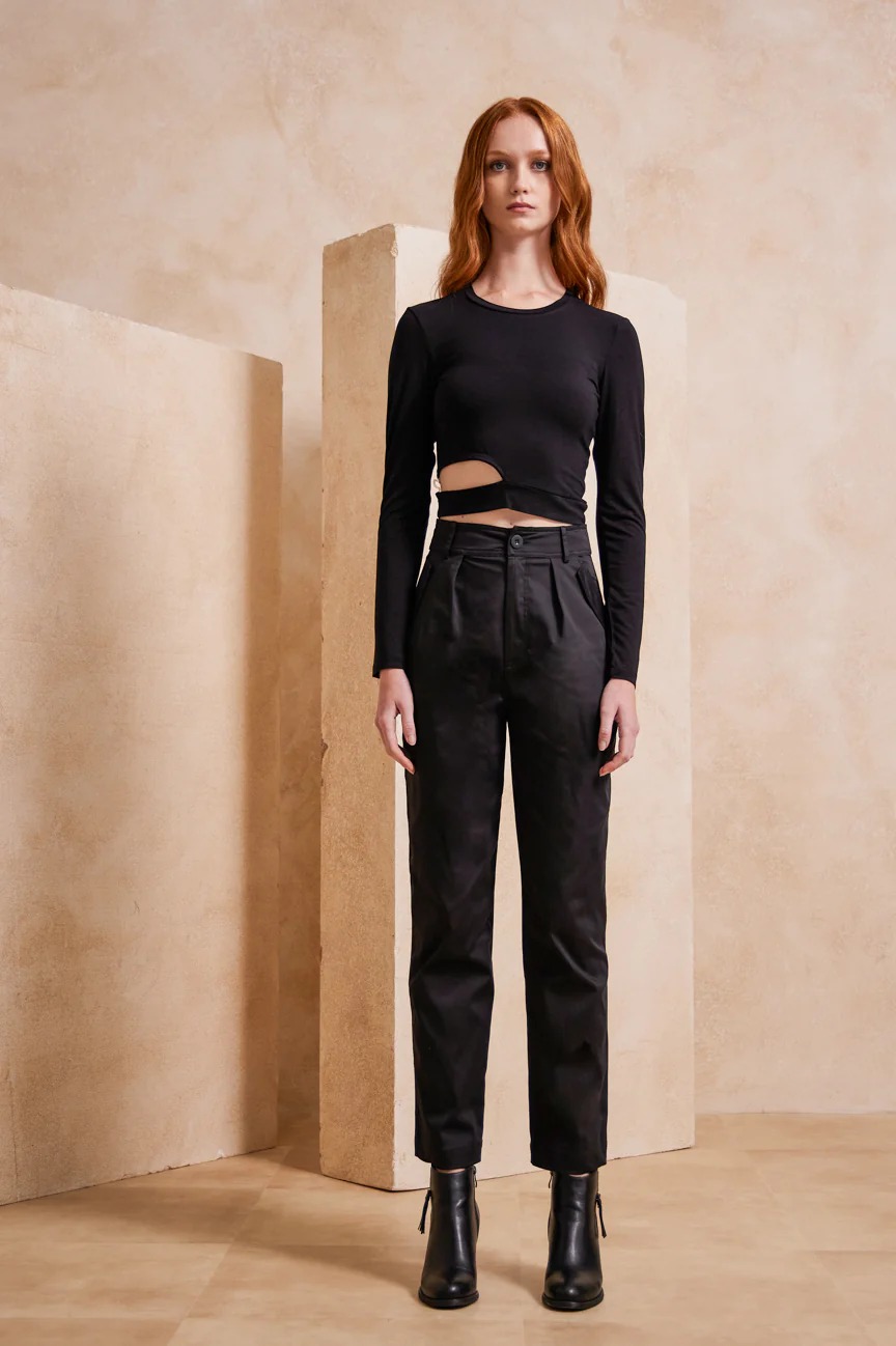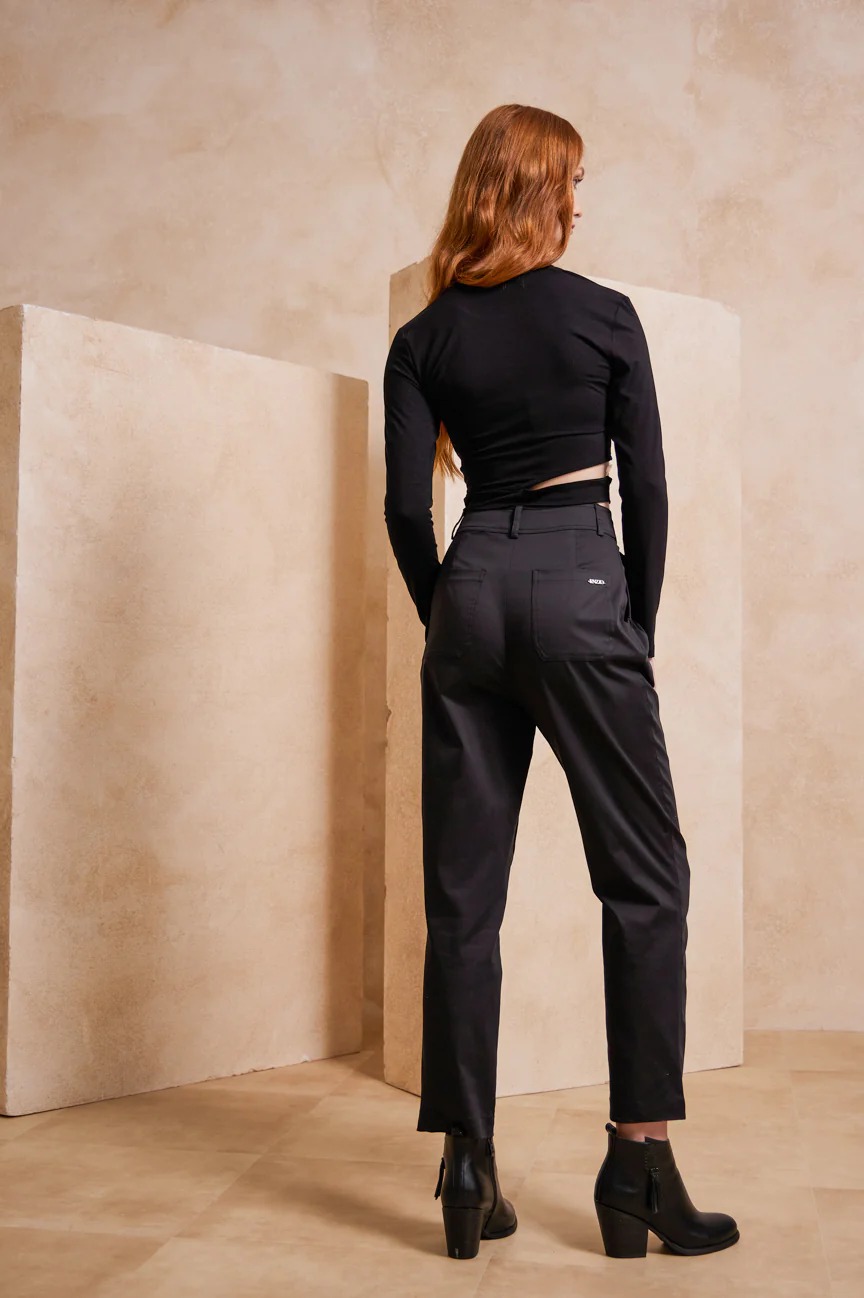 Ψηλόμεσο παντελόνι. Σταθερό ύφασμα, με μικρή ελαστικότητα.