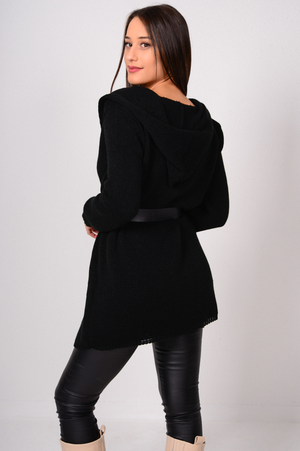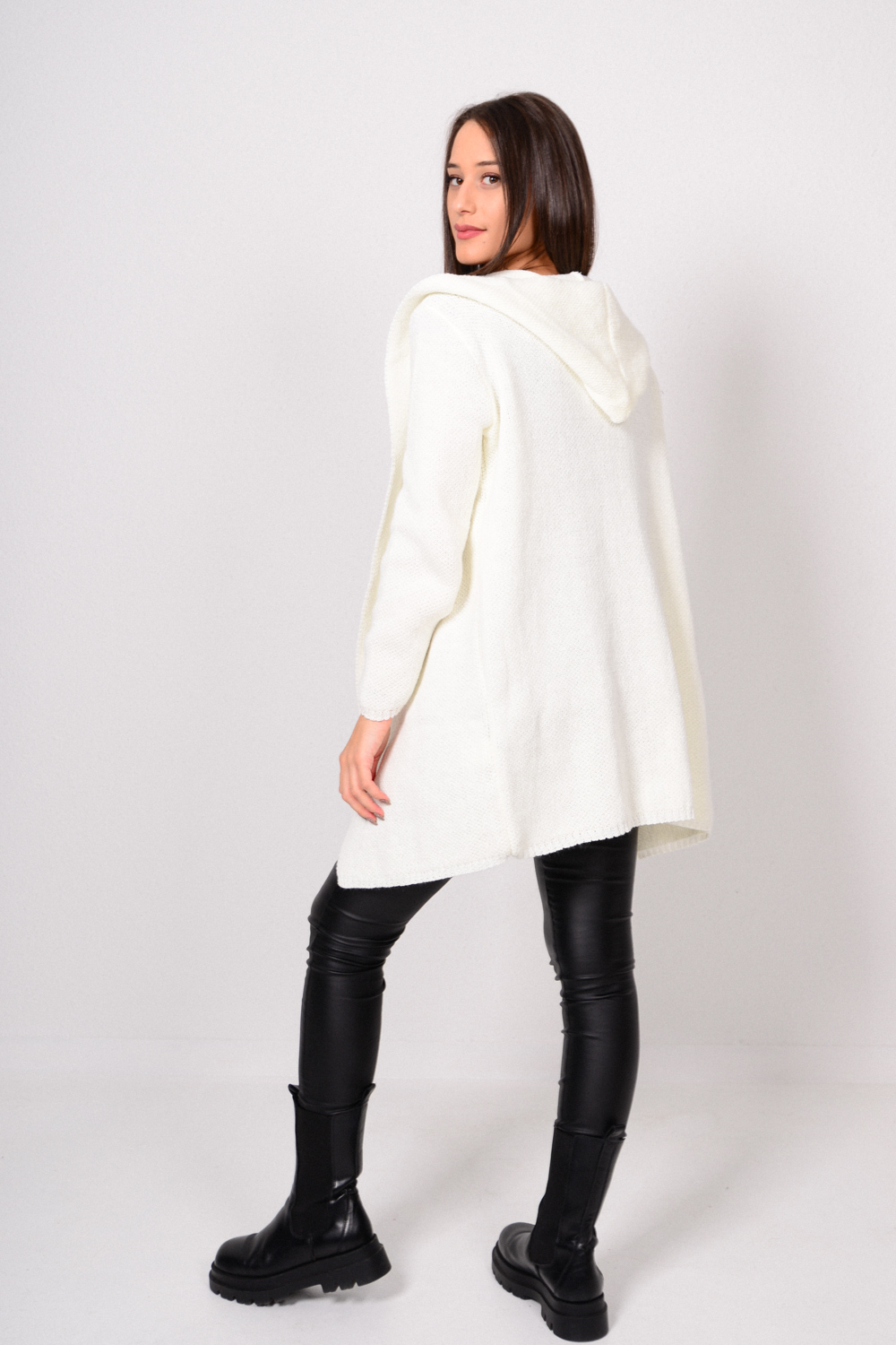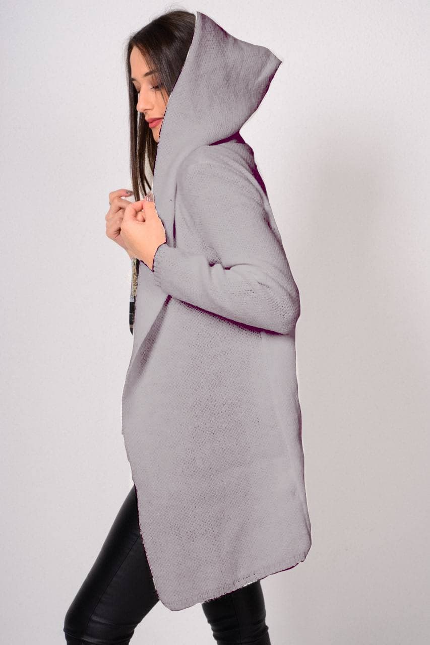 Μακρυμάνικη με κουκούλα πλεκτή ζακέτα.