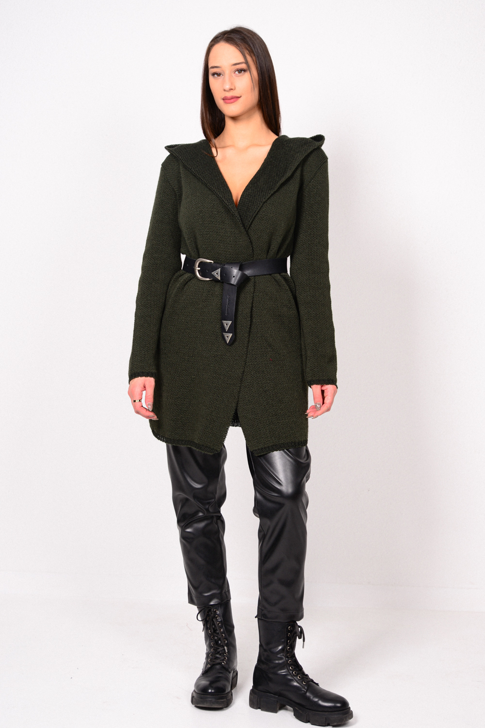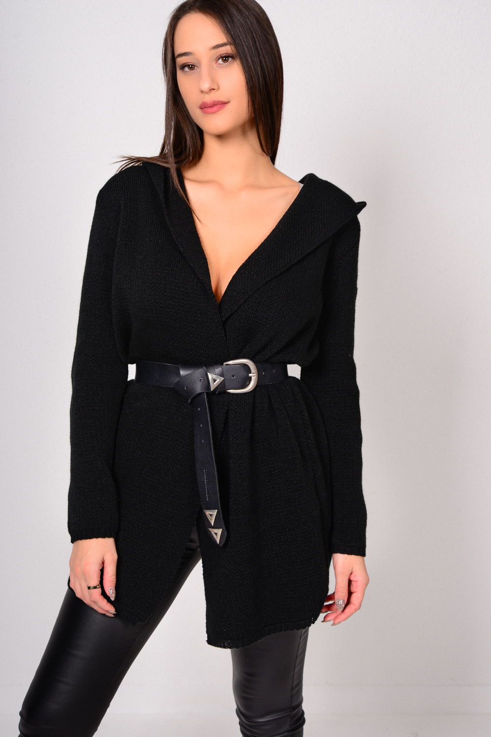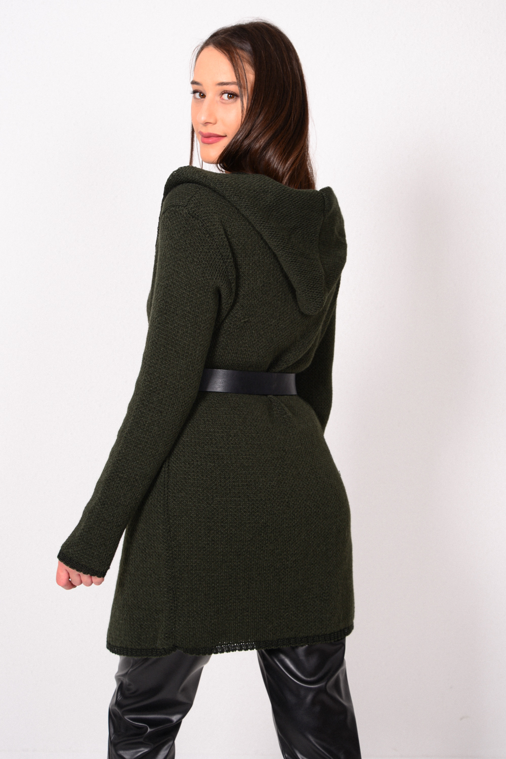 Μακρυμάνικη με κουκούλα πλεκτή ζακέτα.