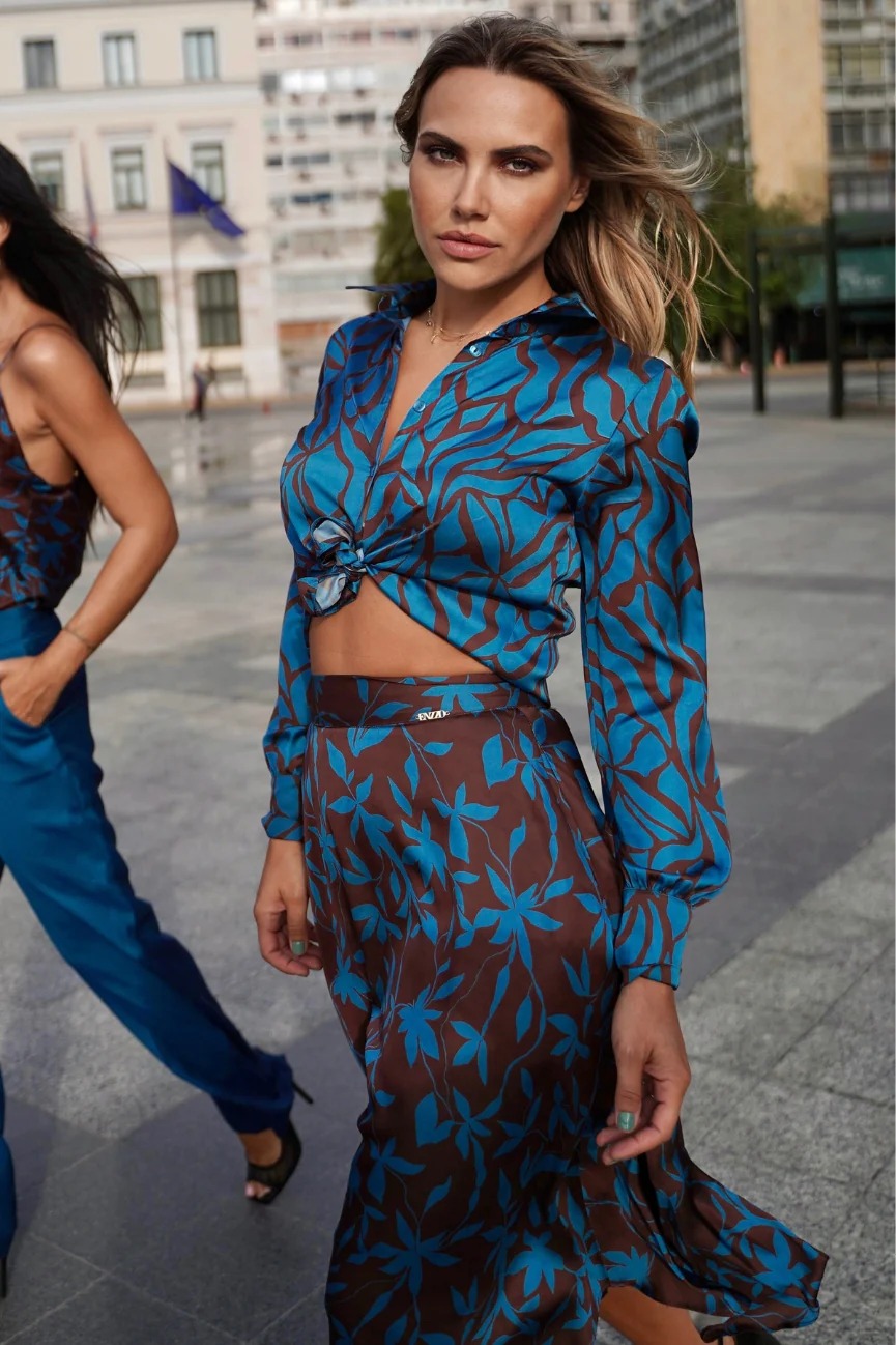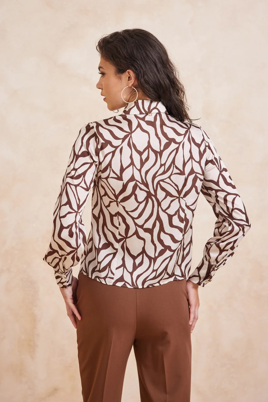 Πουκάμισο εμπριμέ μακρυμάνικο. Σταθερό ύφασμα με σατέν όψη.
