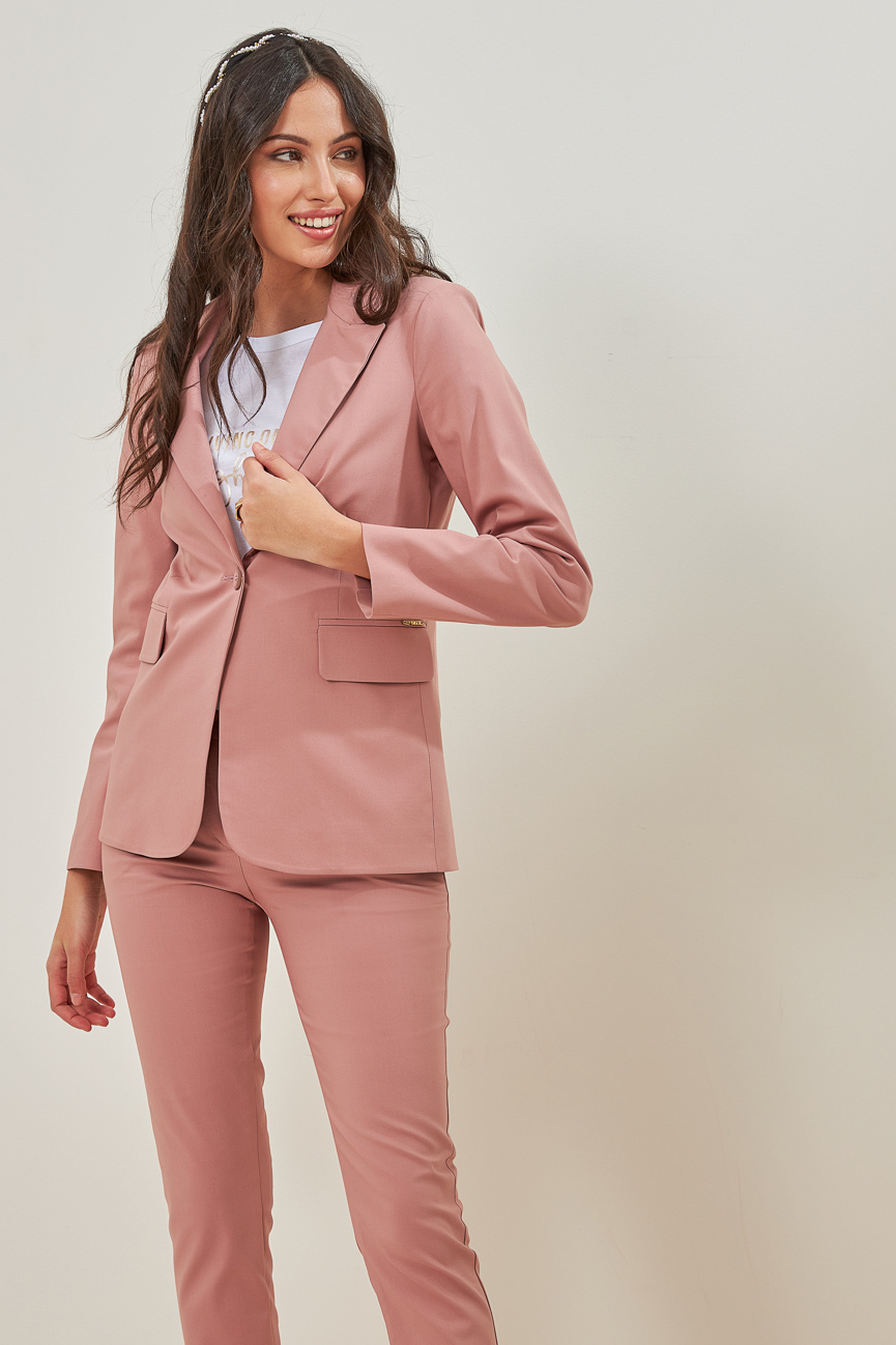 Στενή εφαρμογή με άνετη κίνηση. Γιακά με πέτο και μακρύ μανίκι.