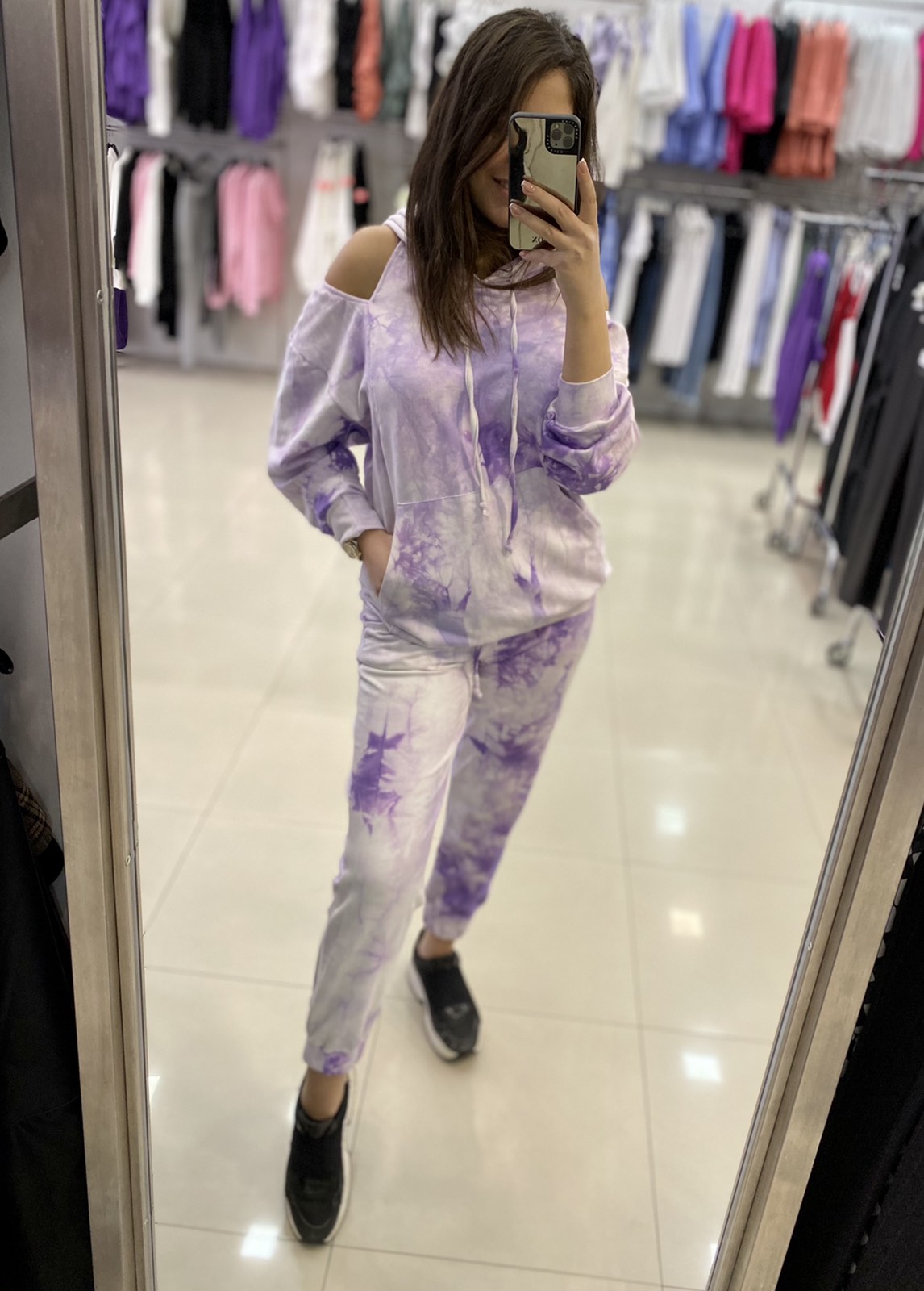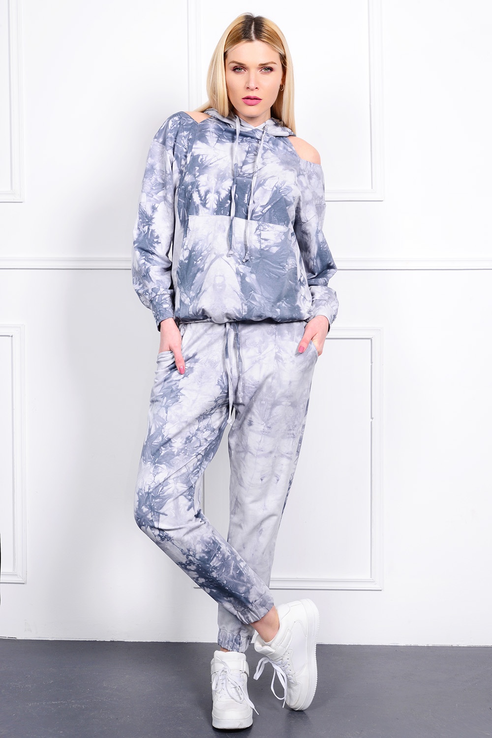 Μπλούζα και παντελόνι φούτερ TIE DYE με κουκούλα και ανοιχτή πλάτη