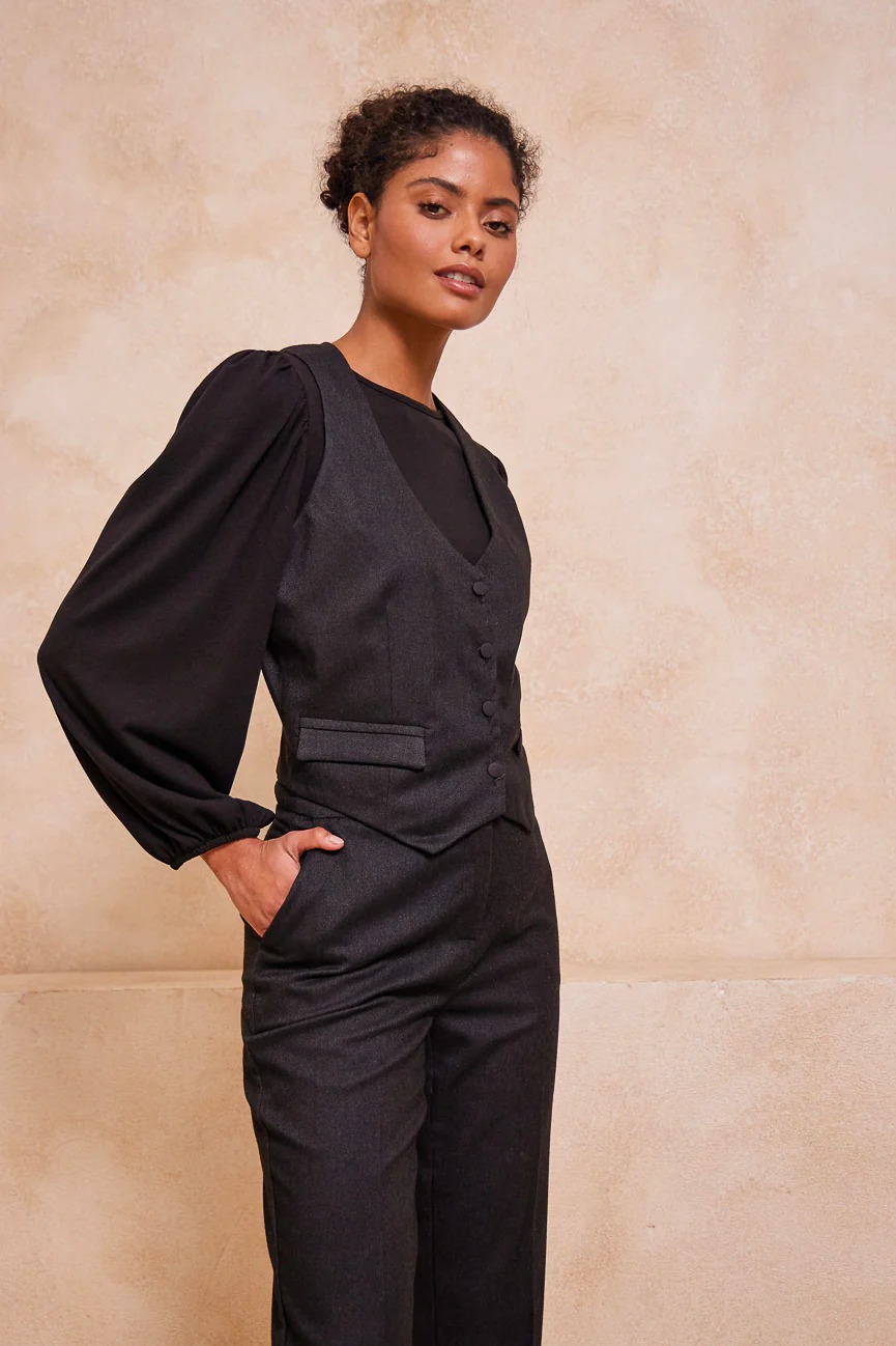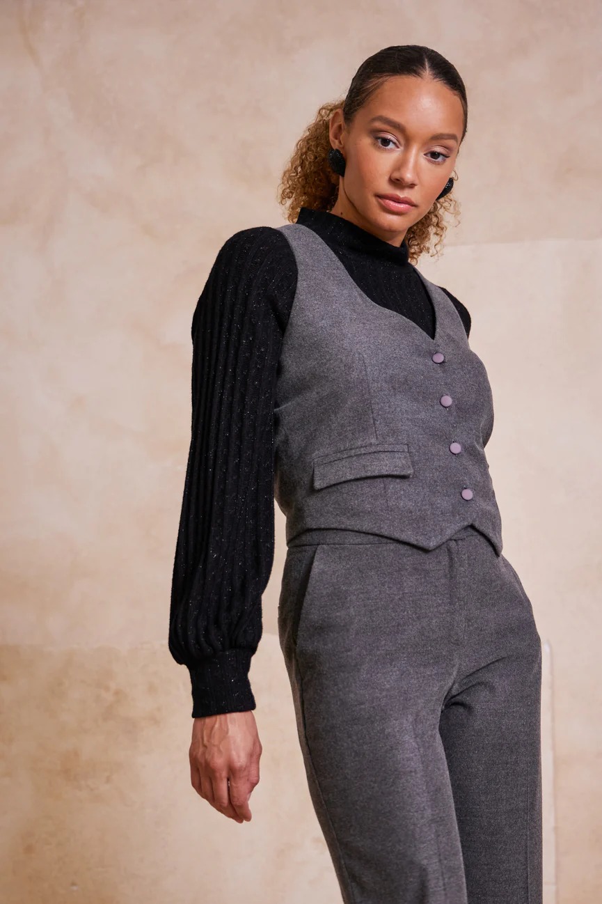 Γιλέκο με κουμπιά. Σταθερό ύφασμα. V λαιμόκοψη.