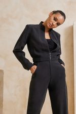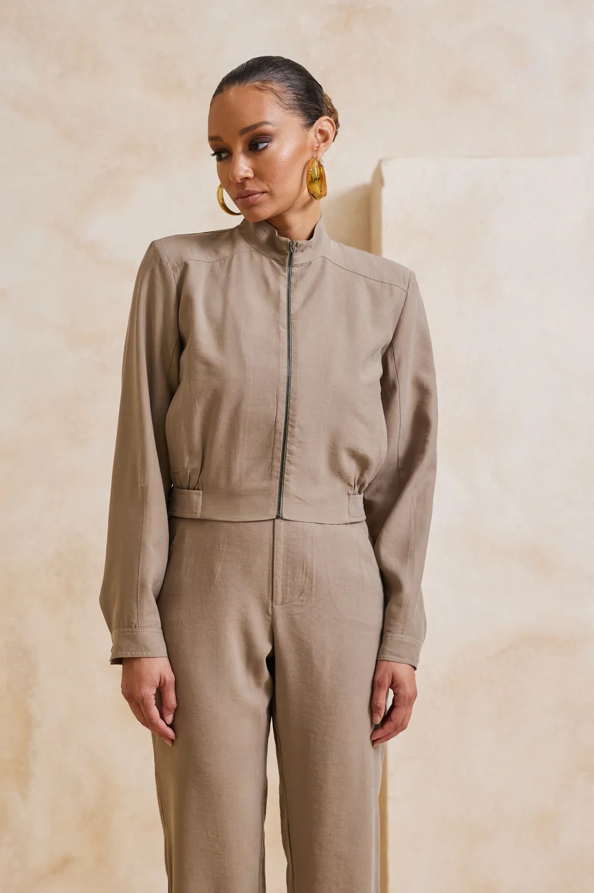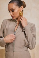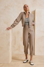 Bomber τζάκετ κοντό. Σταθερό ύφασμα. Ίσια γραμμή με άνετη κίνηση.