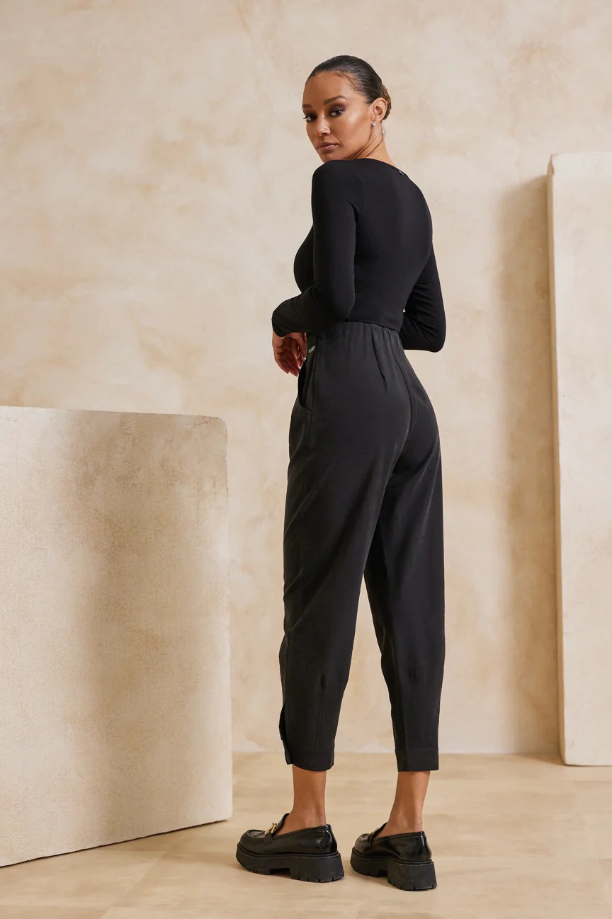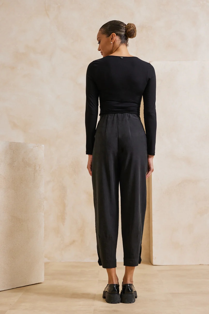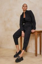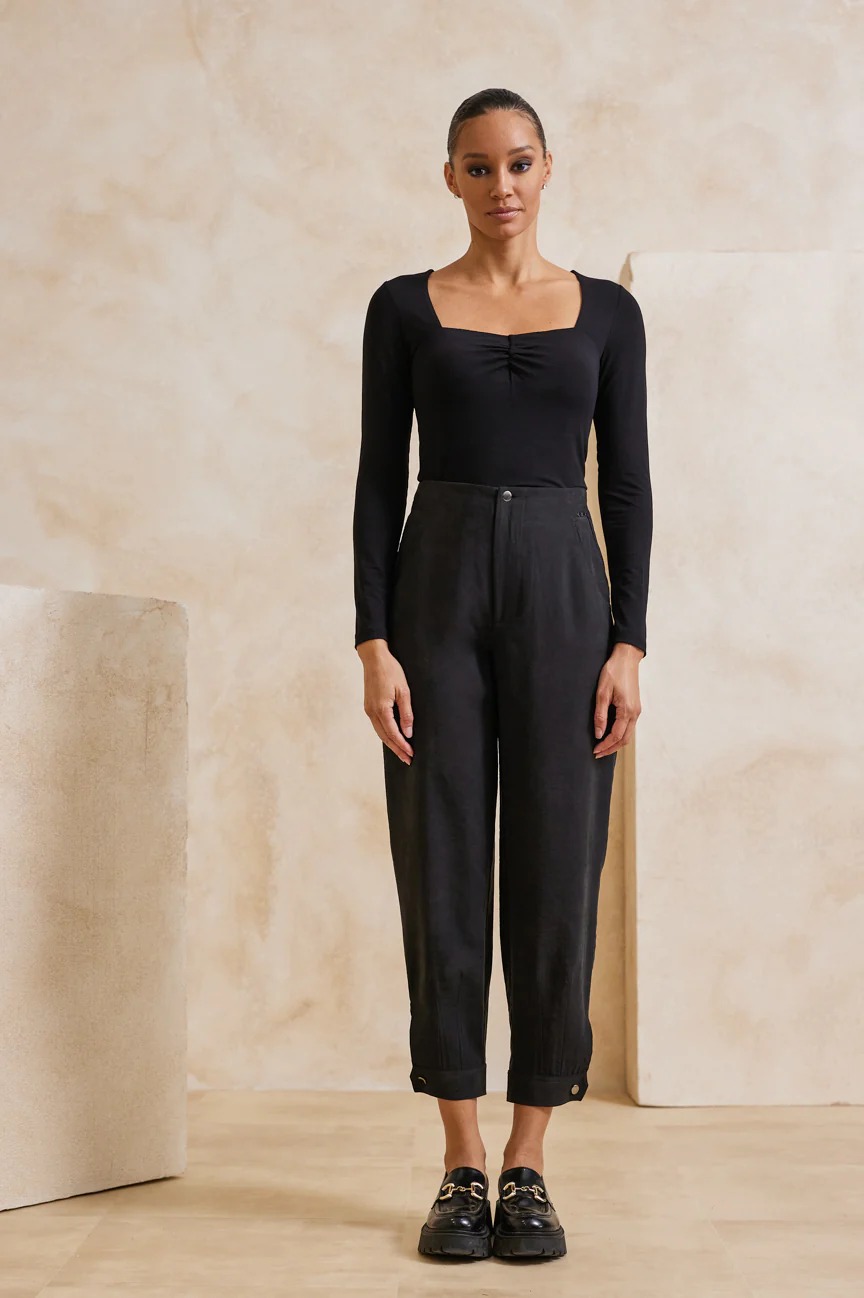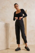 Παντελόνι ψηλόμεσο. Σταθερό ύφασμα. Ίσια γραμμή με άνετη κίνηση.