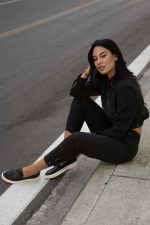 Λάστιχο στο τελείωμα πίσω. Κλείσιμο με φερμουάρ.
