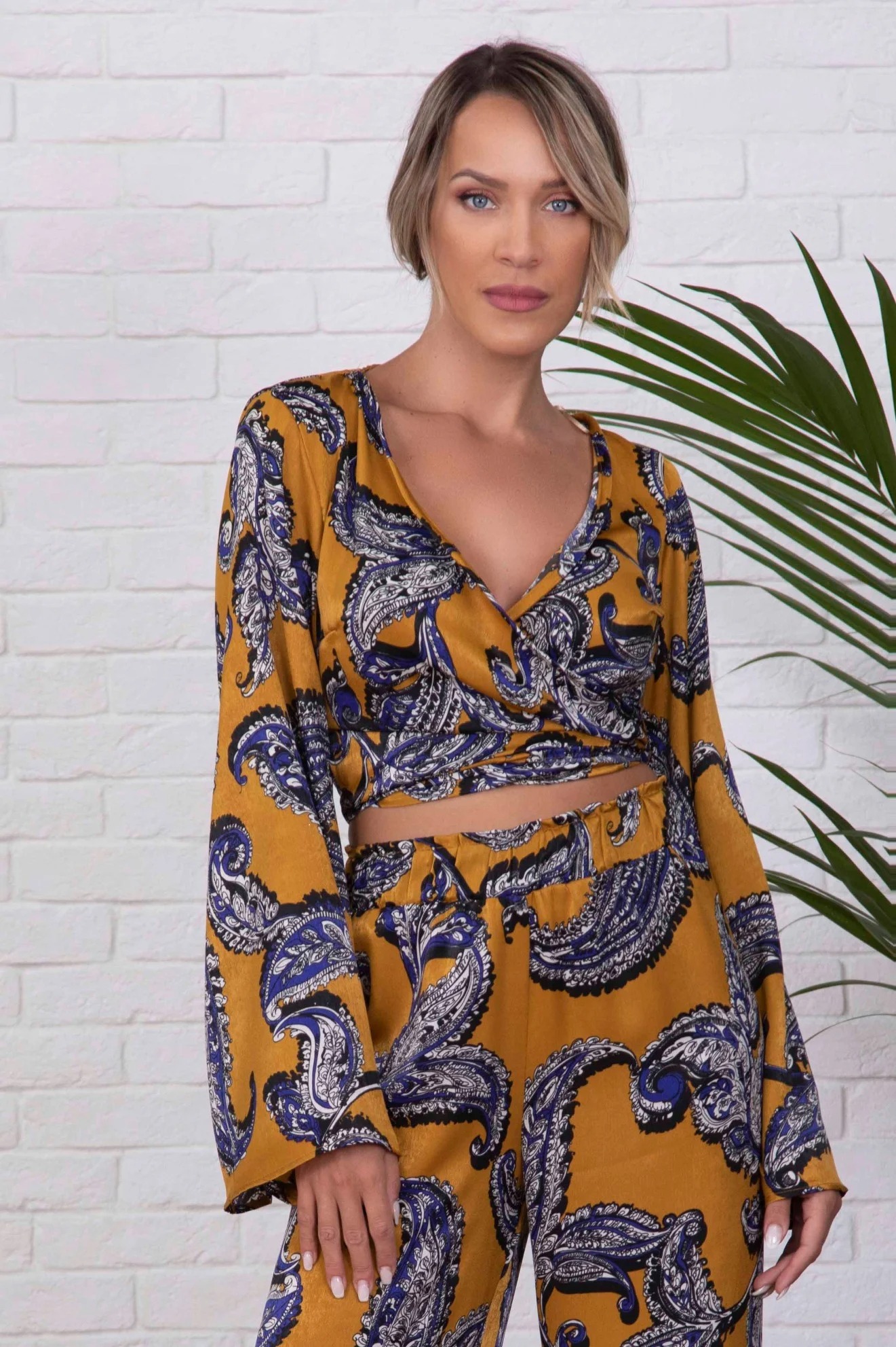 Μπλούζα σατέν κρουαζέ με βολάν εμπρός