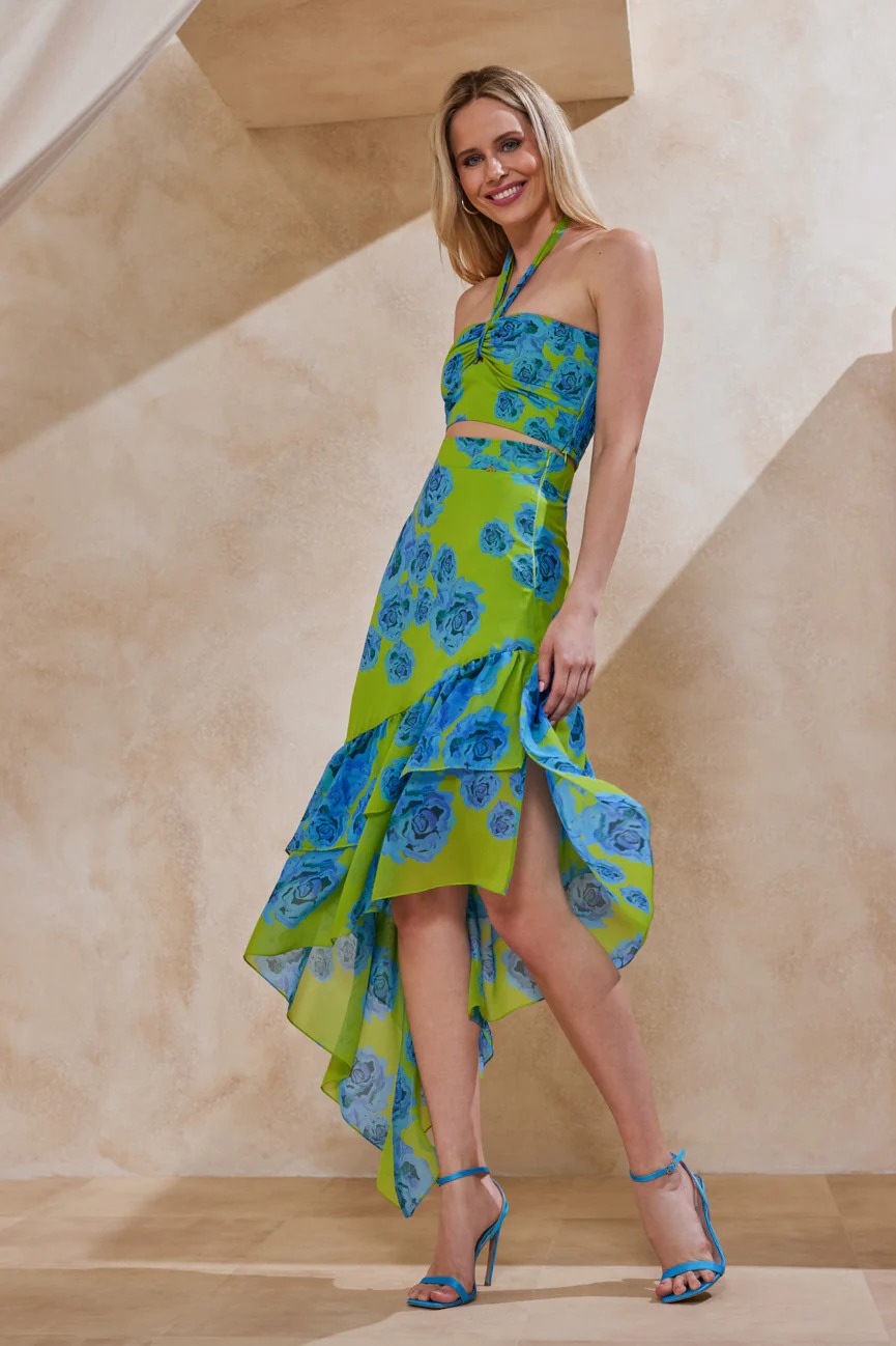 Φούστα φλοράλ. Σταθερό ύφασμα. Ίσια γραμμή με άνετη κίνηση.