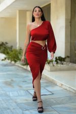 Μπλούζα σατέν με έναν ώμο και άνοιγμα στο μανίκι