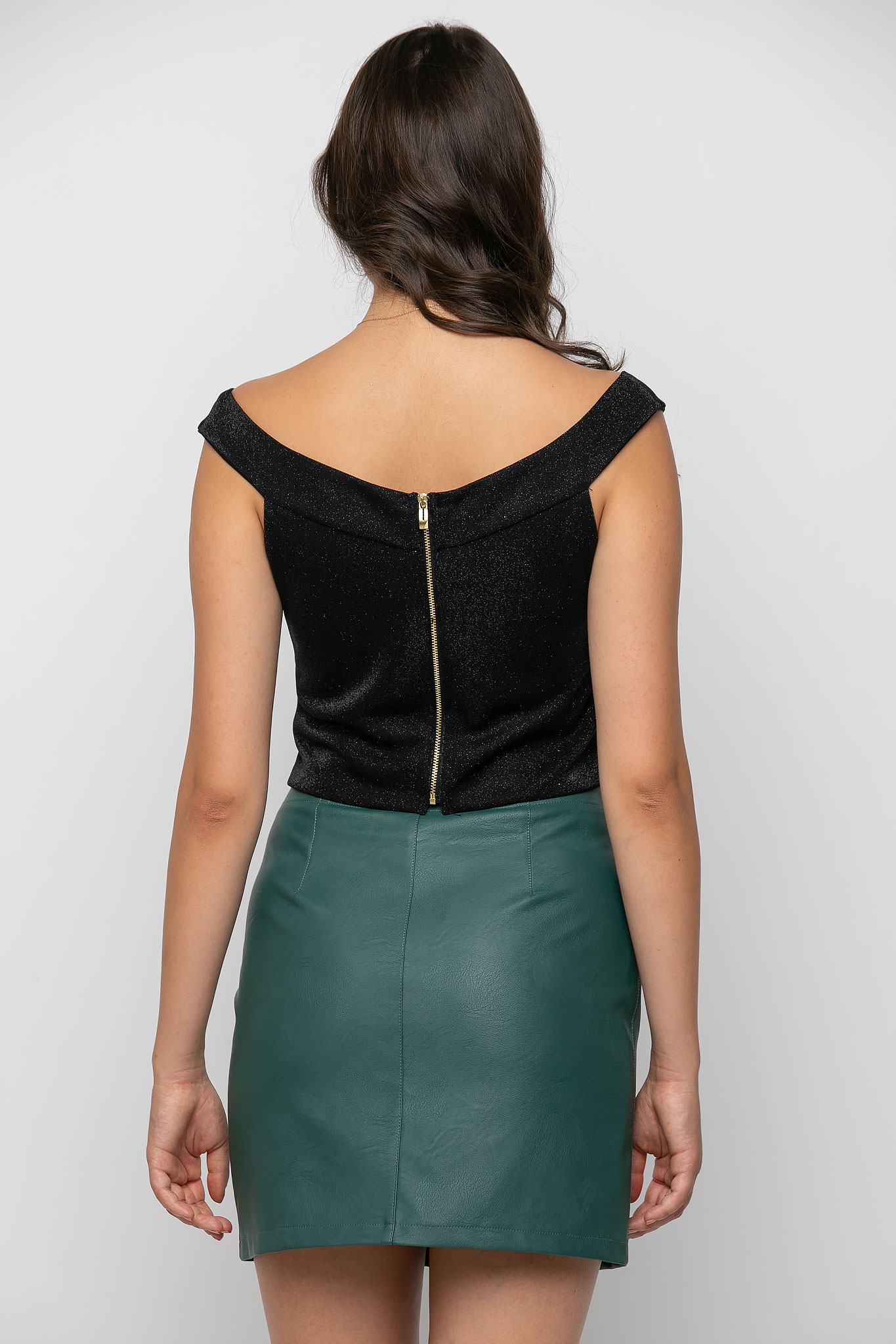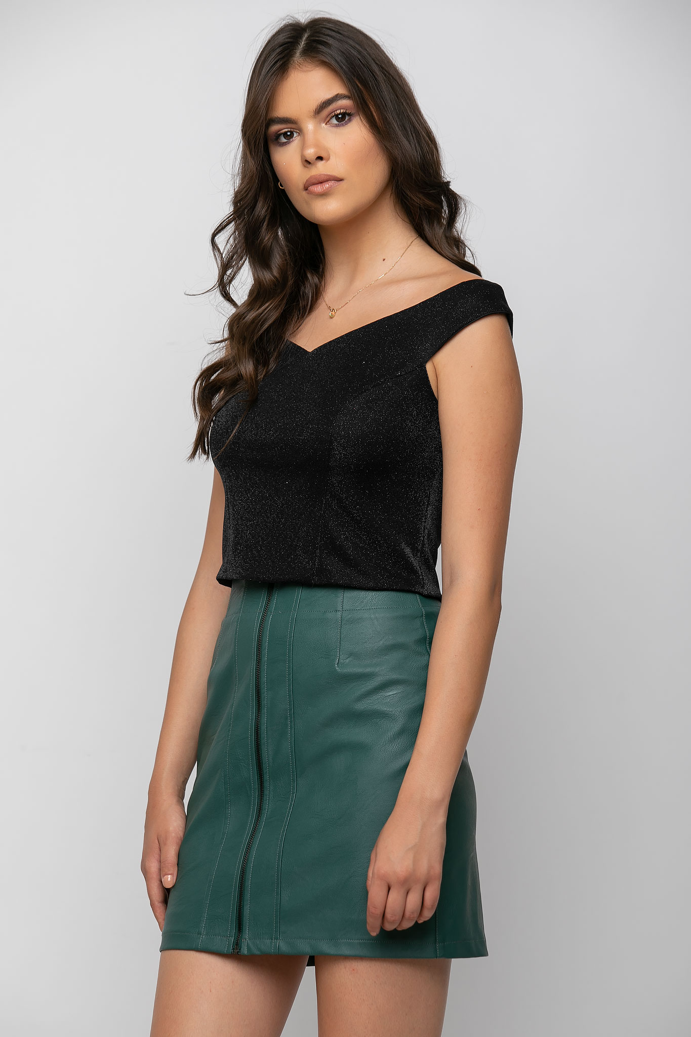 Φούστα mini δερματίνη με φερμουάρ εμπρός
