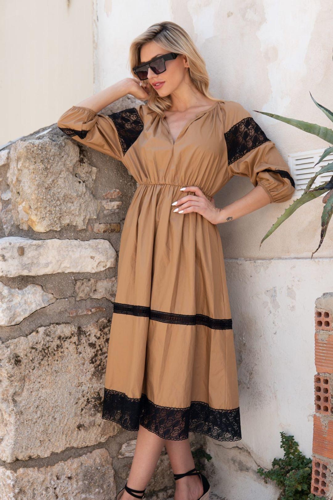 Φόρεμα ποπλίνα με δαντέλα