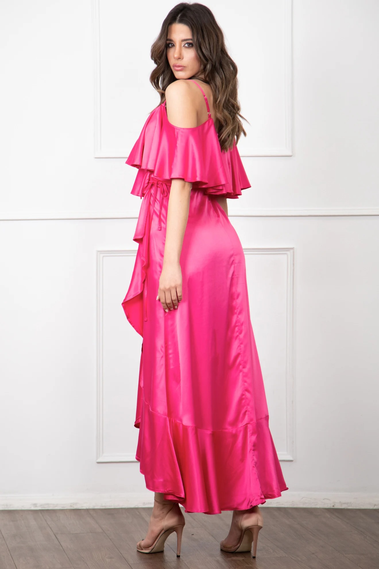 Κρουαζέ φόρεμα με βολάν στο στήθος.