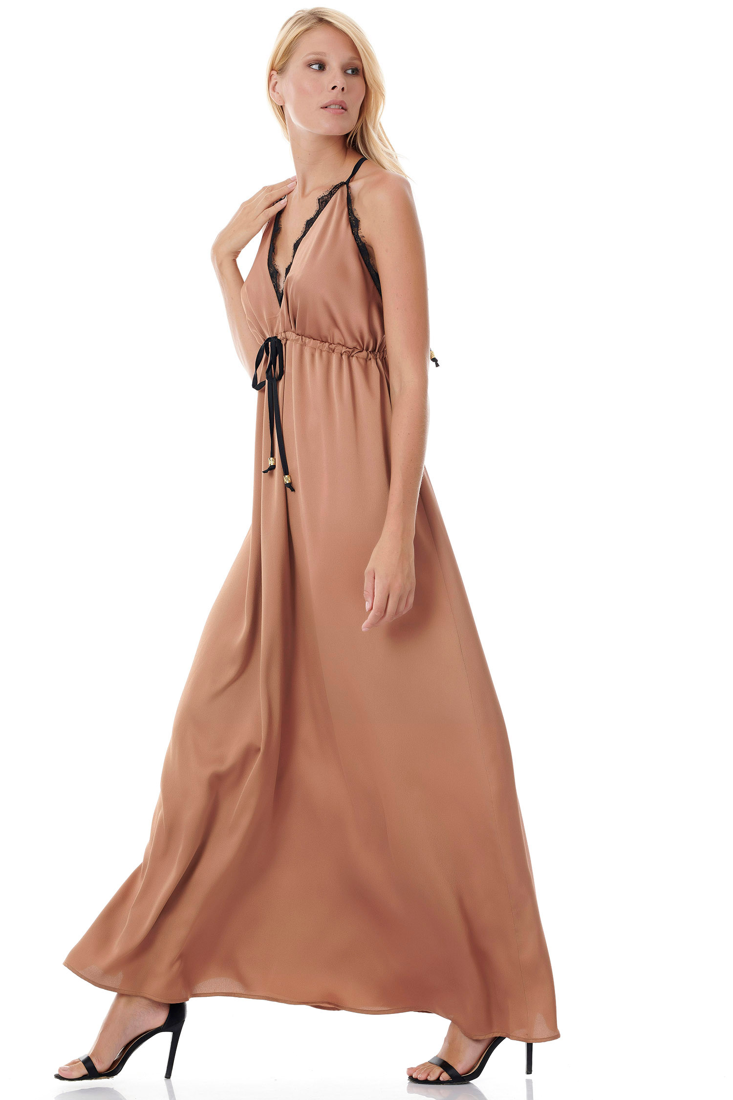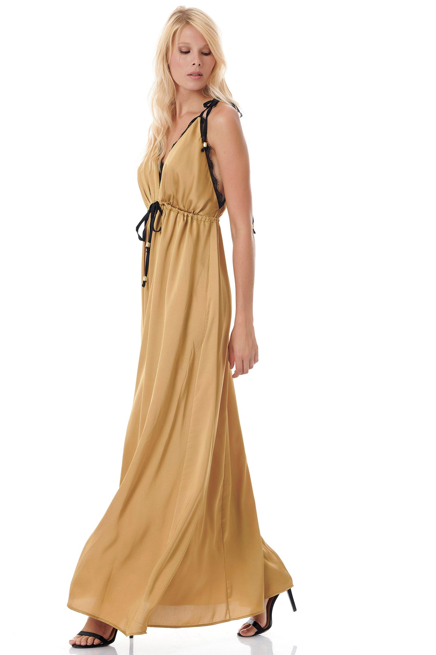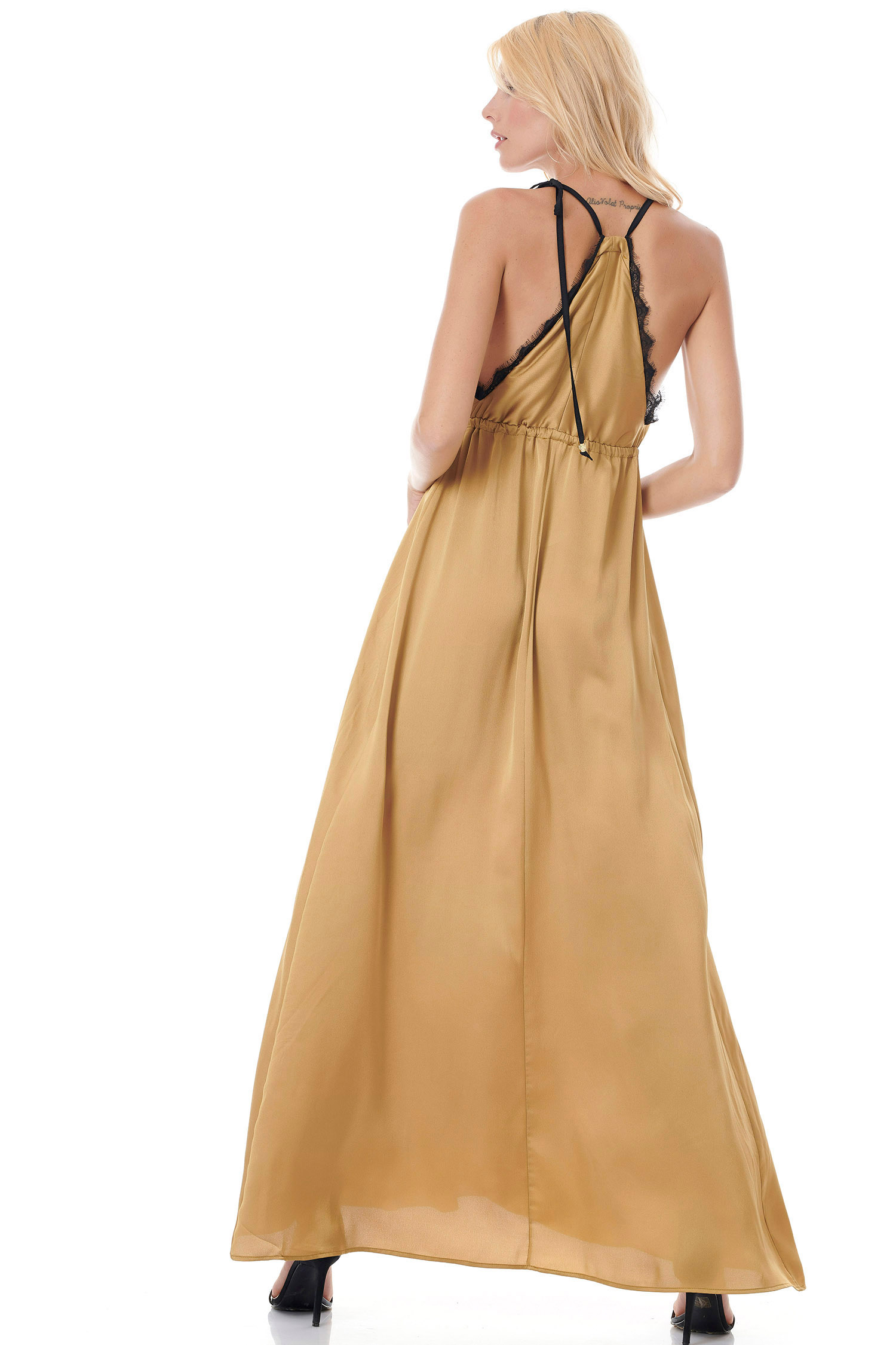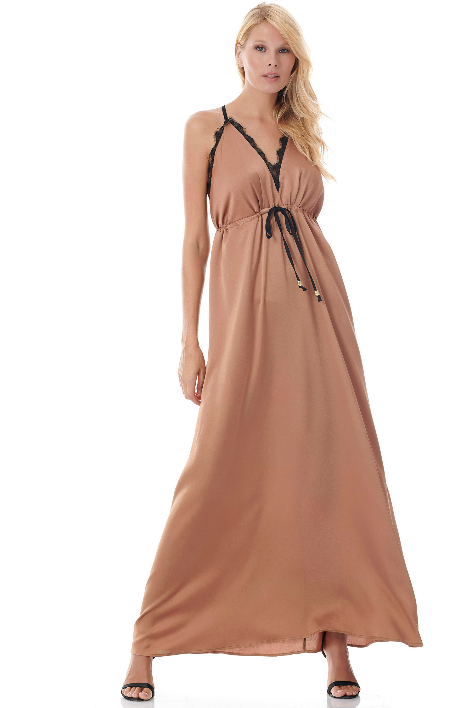 Maxi φόρεμα σατέν με δαντέλα στο στήθος
