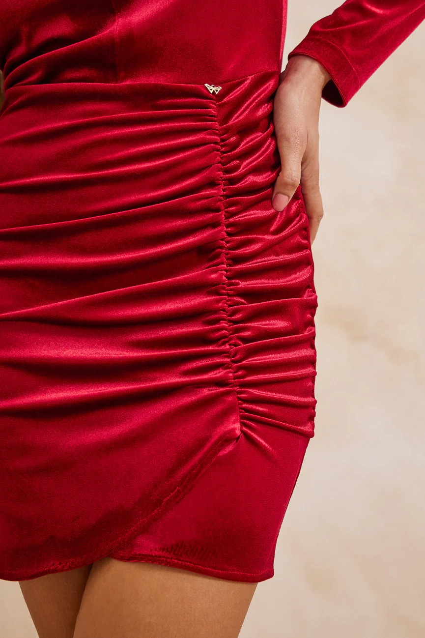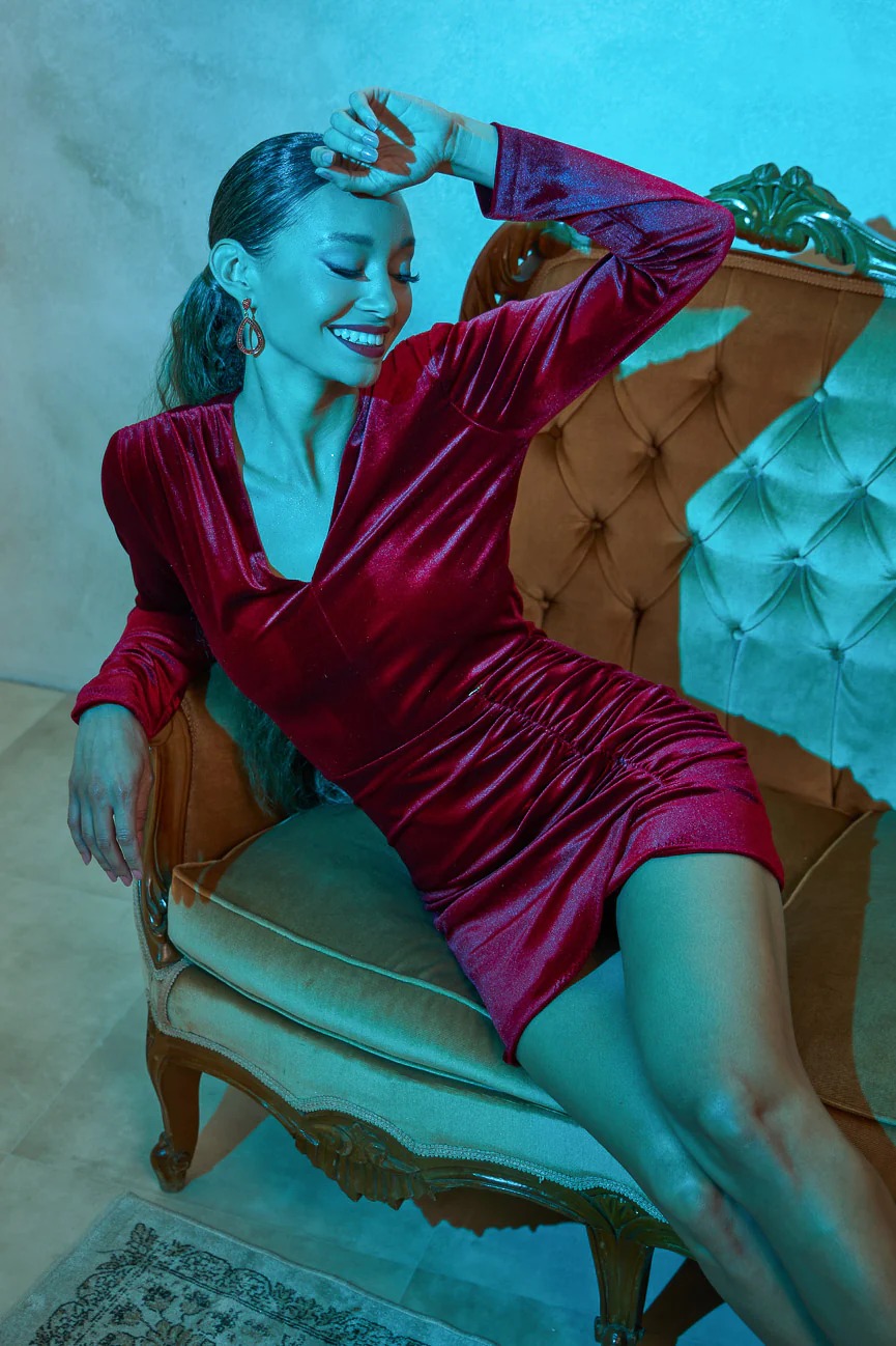 Φόρεμα μακρυμάνικο μίνι. Ελαστικό ύφασμα, βελούδο.