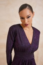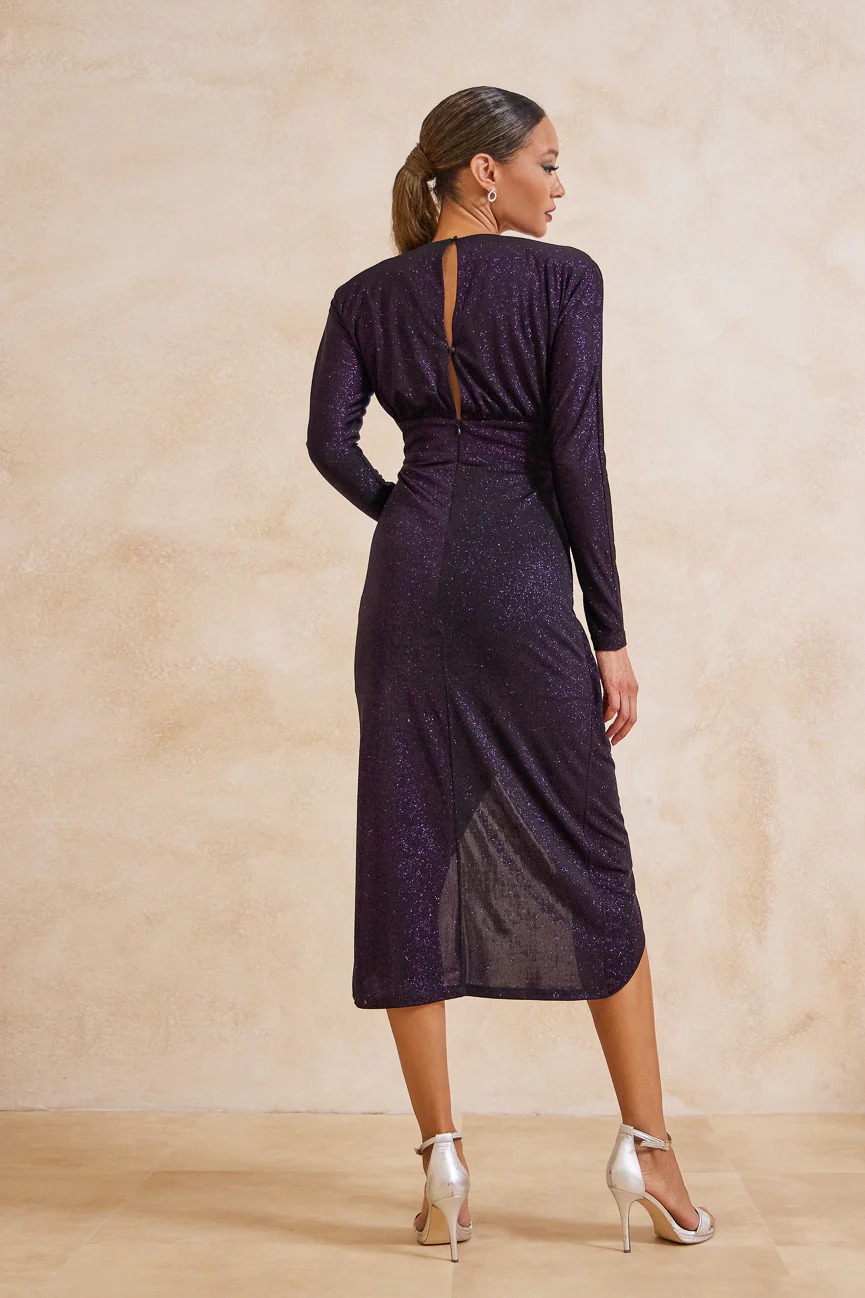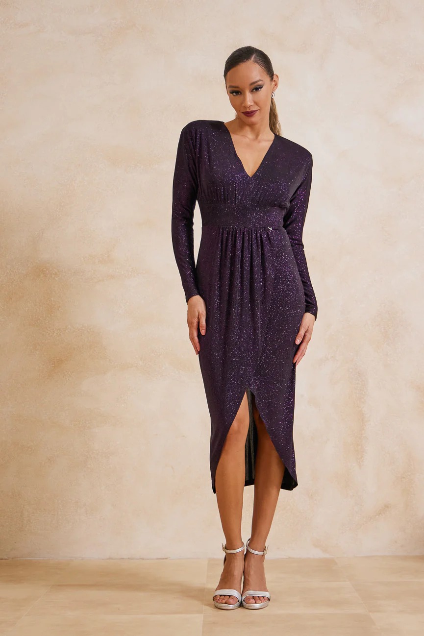 Φόρεμα μίντι μακρυμάνικο. Ελαστικό ύφασμα, μεταλιζέ.