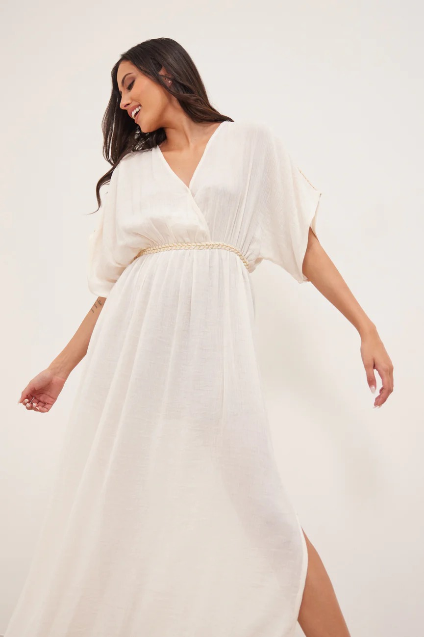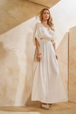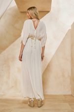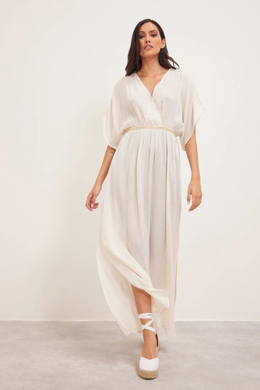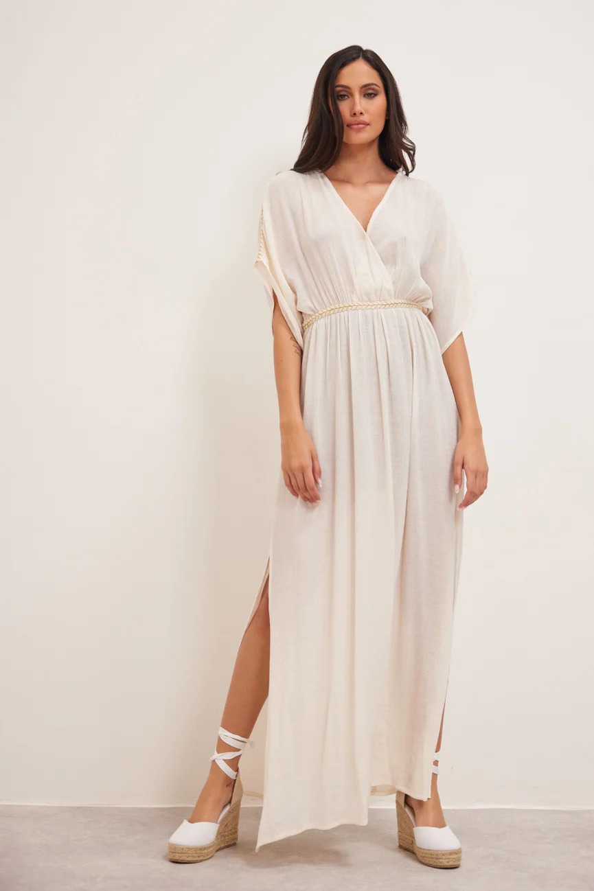 Κορδονάκι στο λαιμό. Φόδρα εσωτερικά. Κούμπωμα σούστα στο στήθος. Ζώνη στη μέση με κορδόνι πλεξούδα.