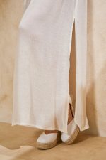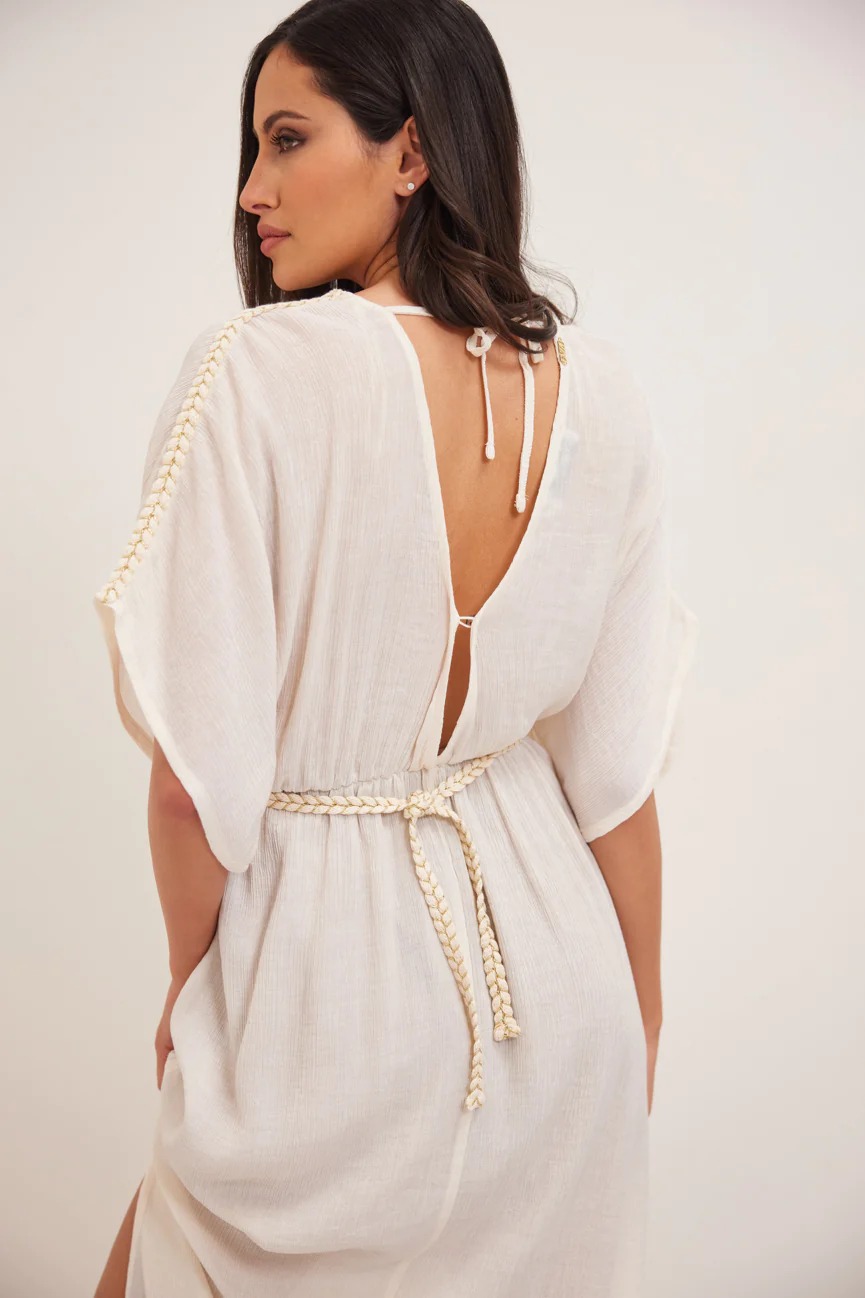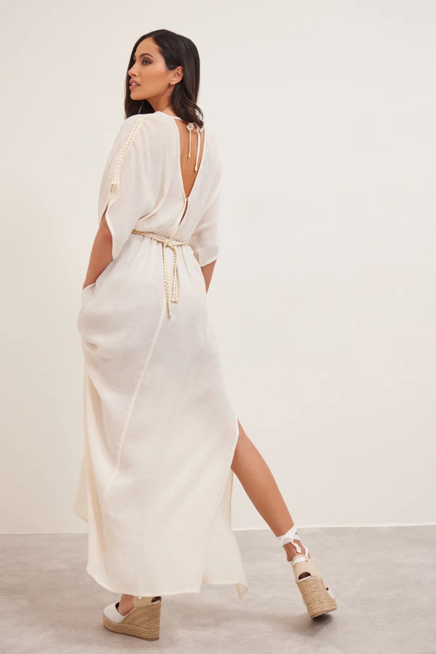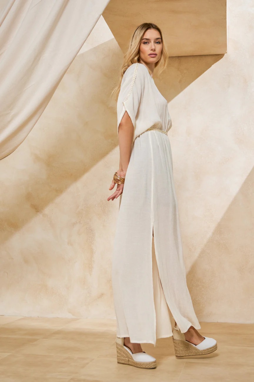 Κορδονάκι στο λαιμό. Φόδρα εσωτερικά. Κούμπωμα σούστα στο στήθος. Ζώνη στη μέση με κορδόνι πλεξούδα.