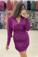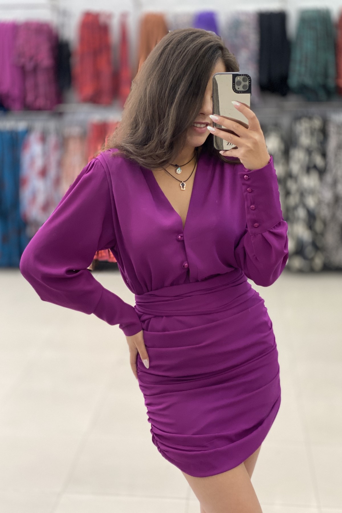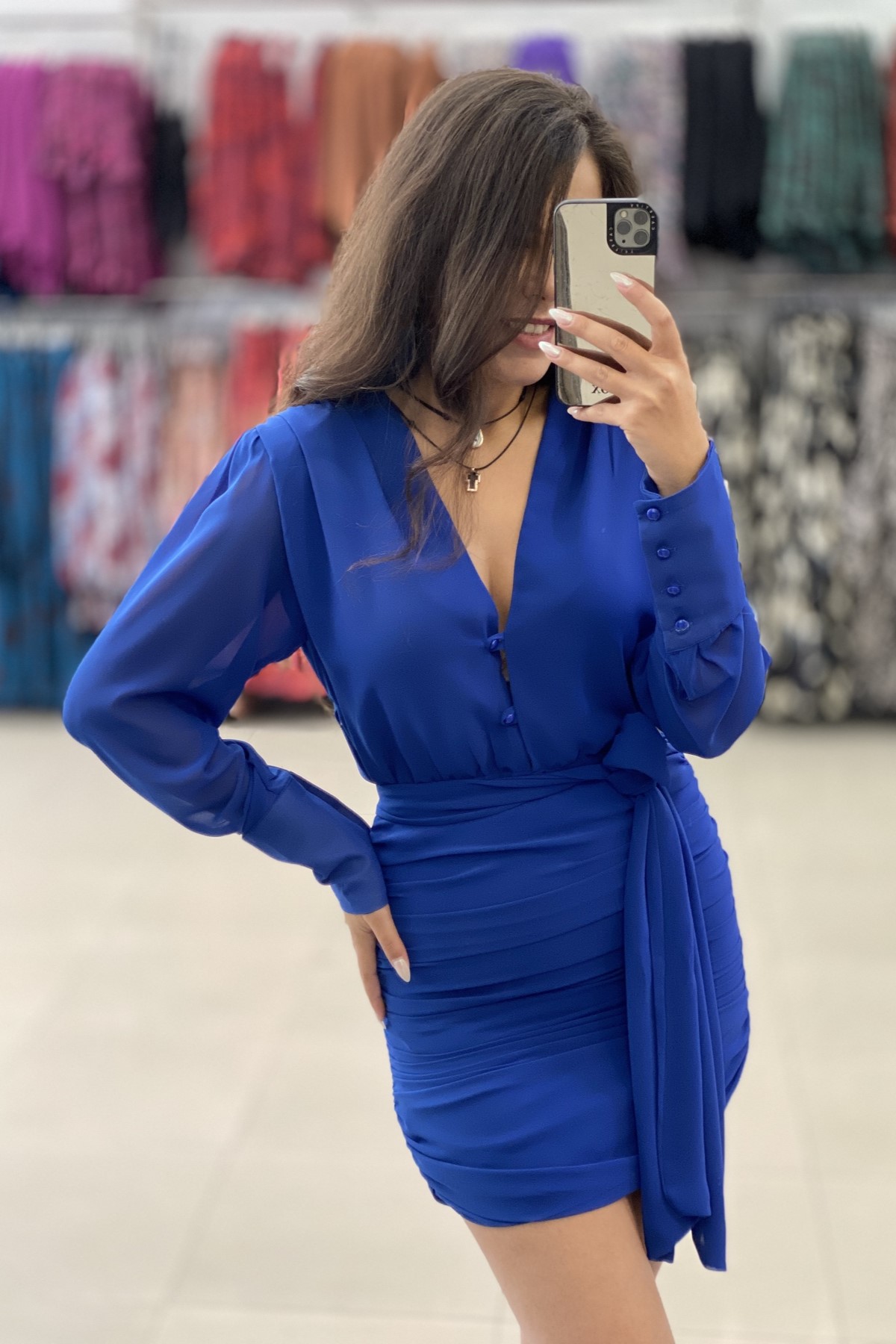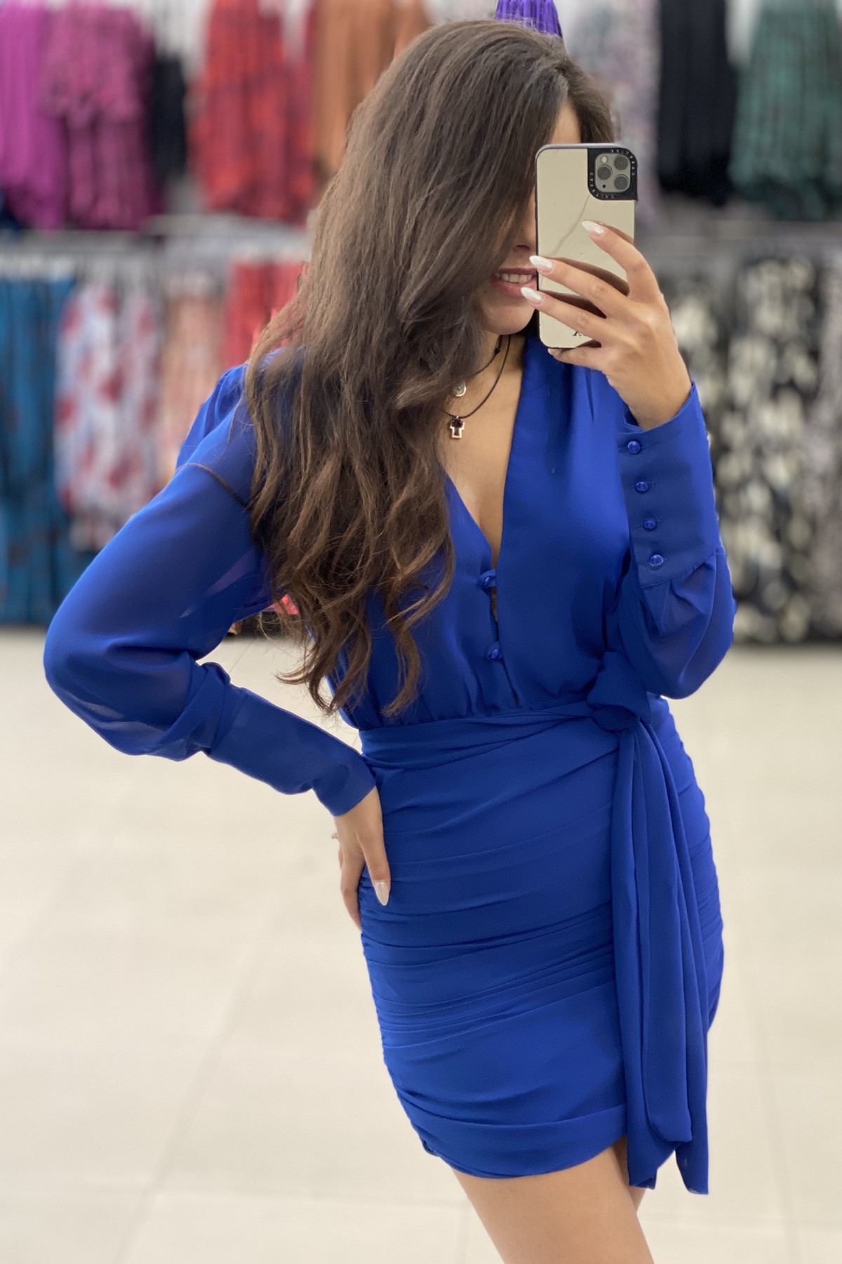 Mini φόρεμα με σούρες στο πλάι και ζώνη.