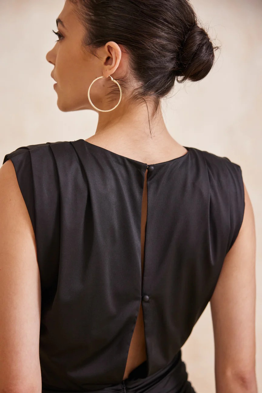 Κρυφό φερμουάρ πίσω και κλείσιμο με κουμπιά. στην πλάτη.