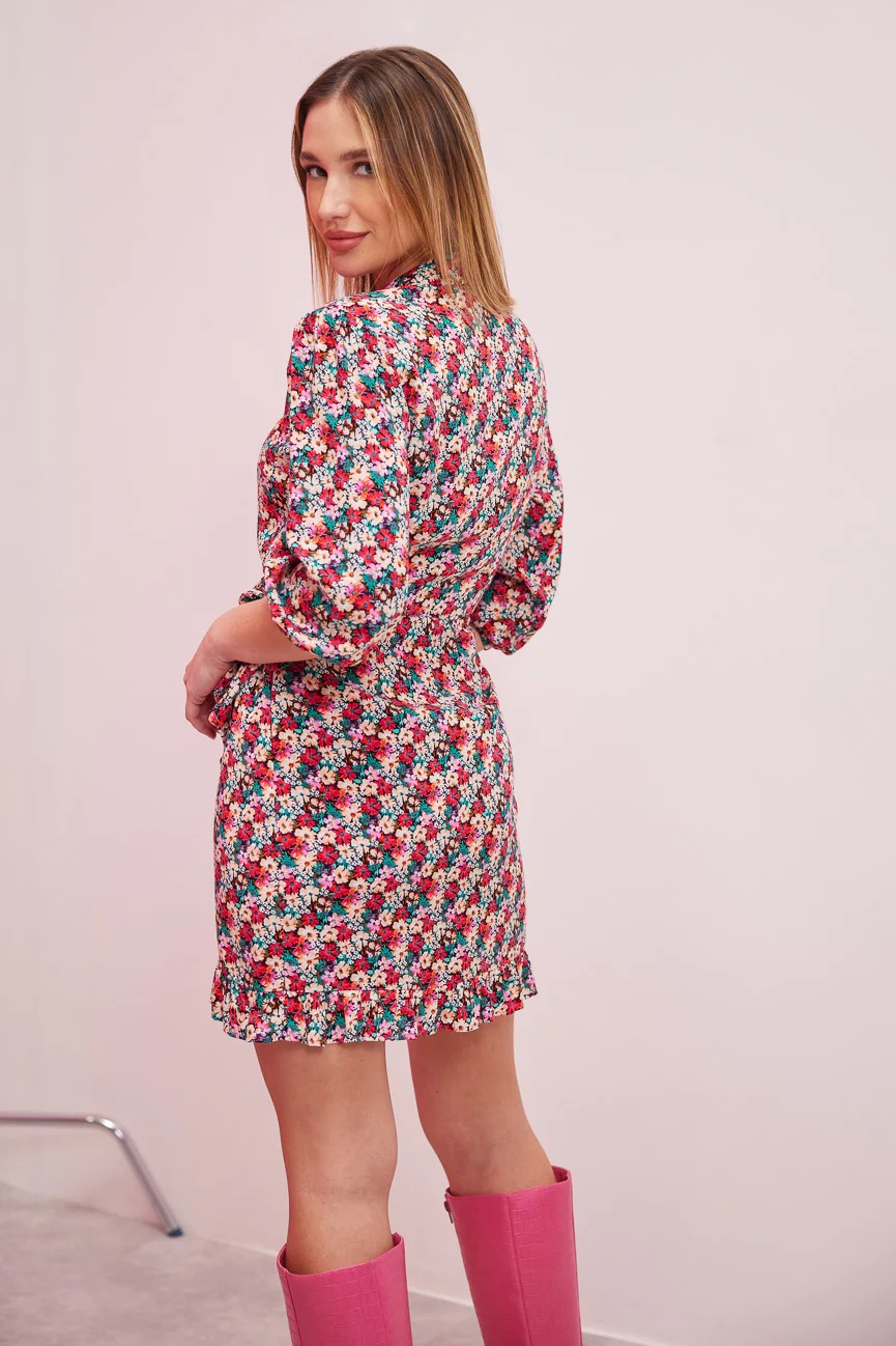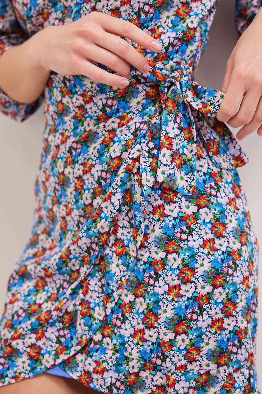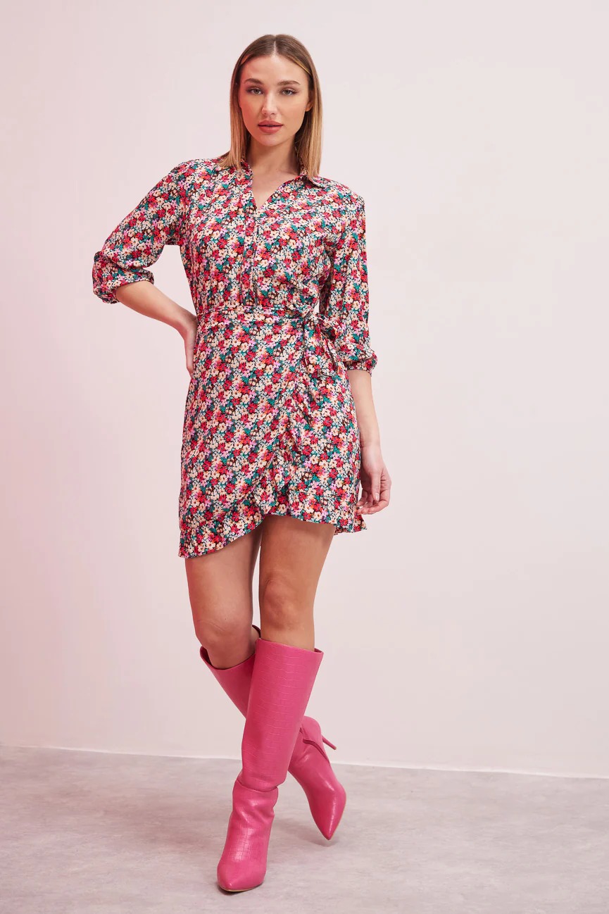 Φόρεμα μίνι φλοράλ. Σταθερό ύφασμα. Ίσια γραμμή με άνετη κίνηση.