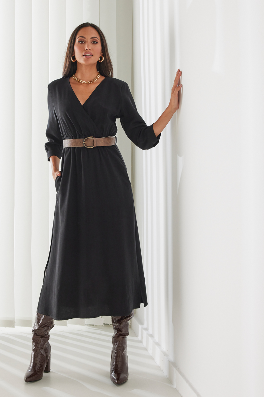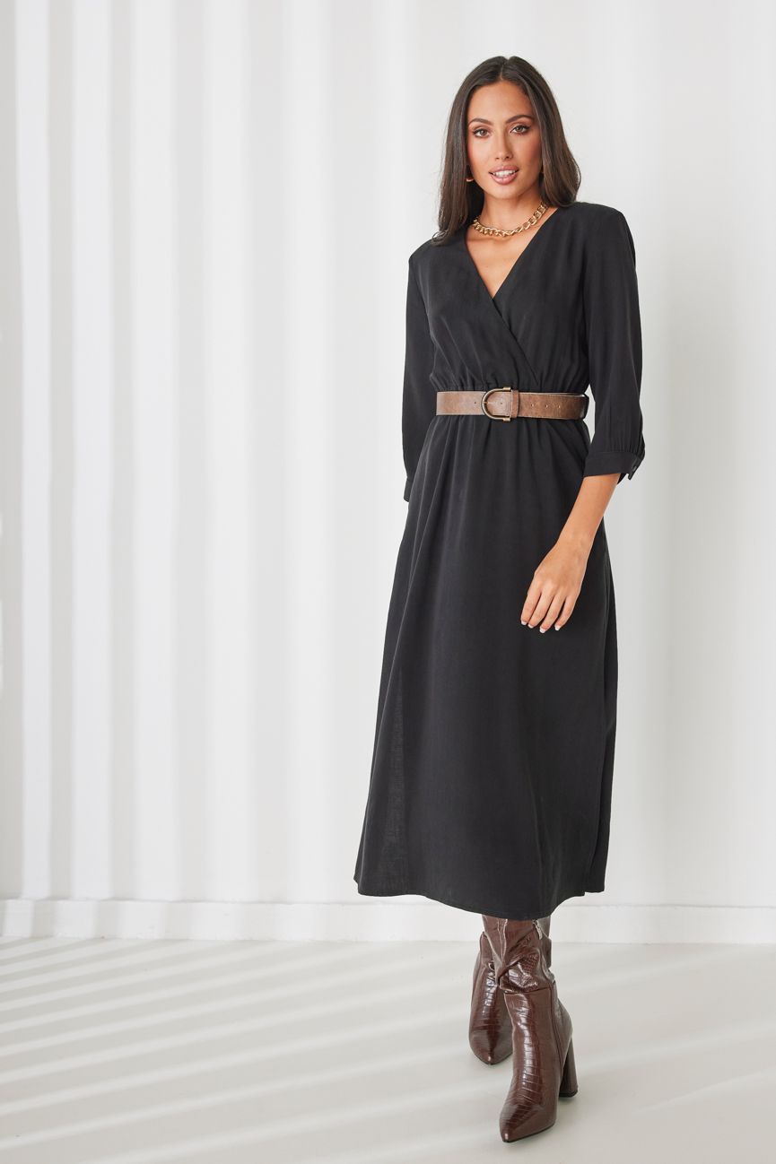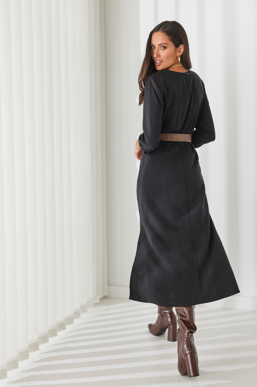 Μίντι φόρεμα. Σταθερό ύφασμα tencel με απαλή υφή.
