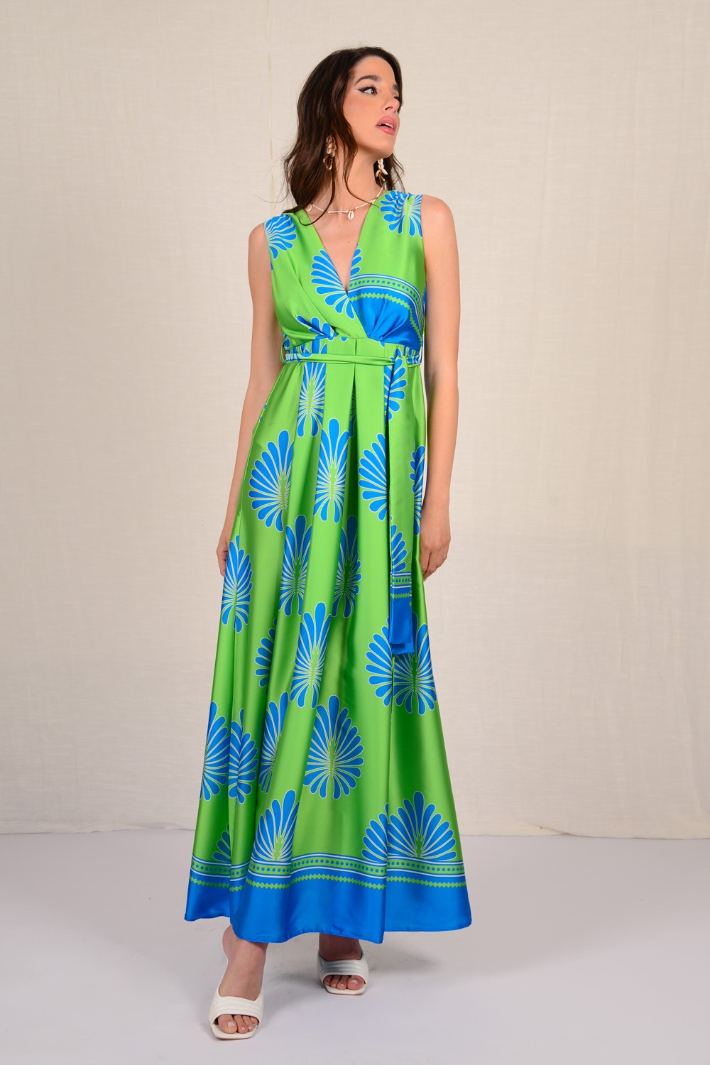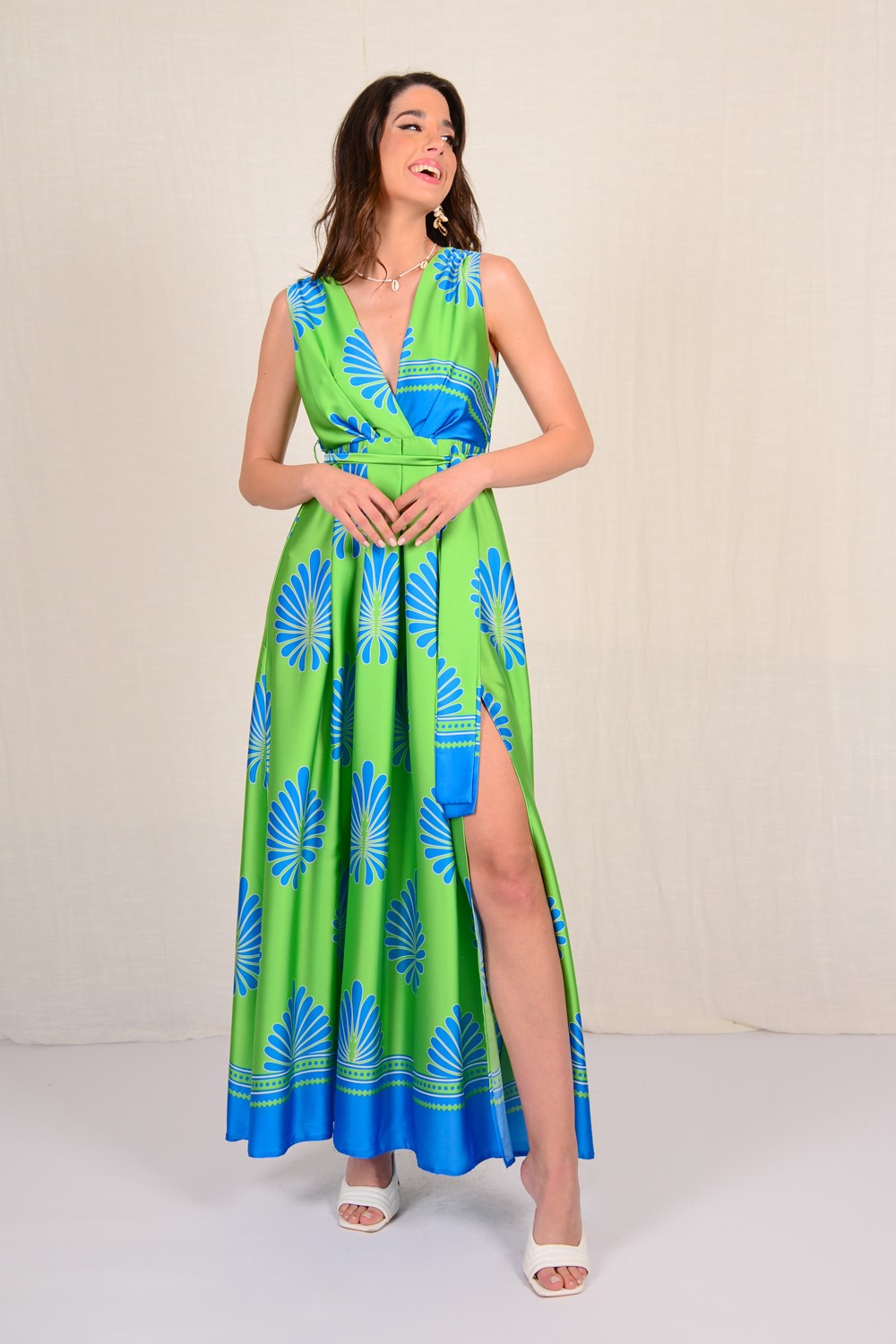 Φόρεμα Maxi εμπριμέ με σκίσιμο.