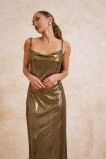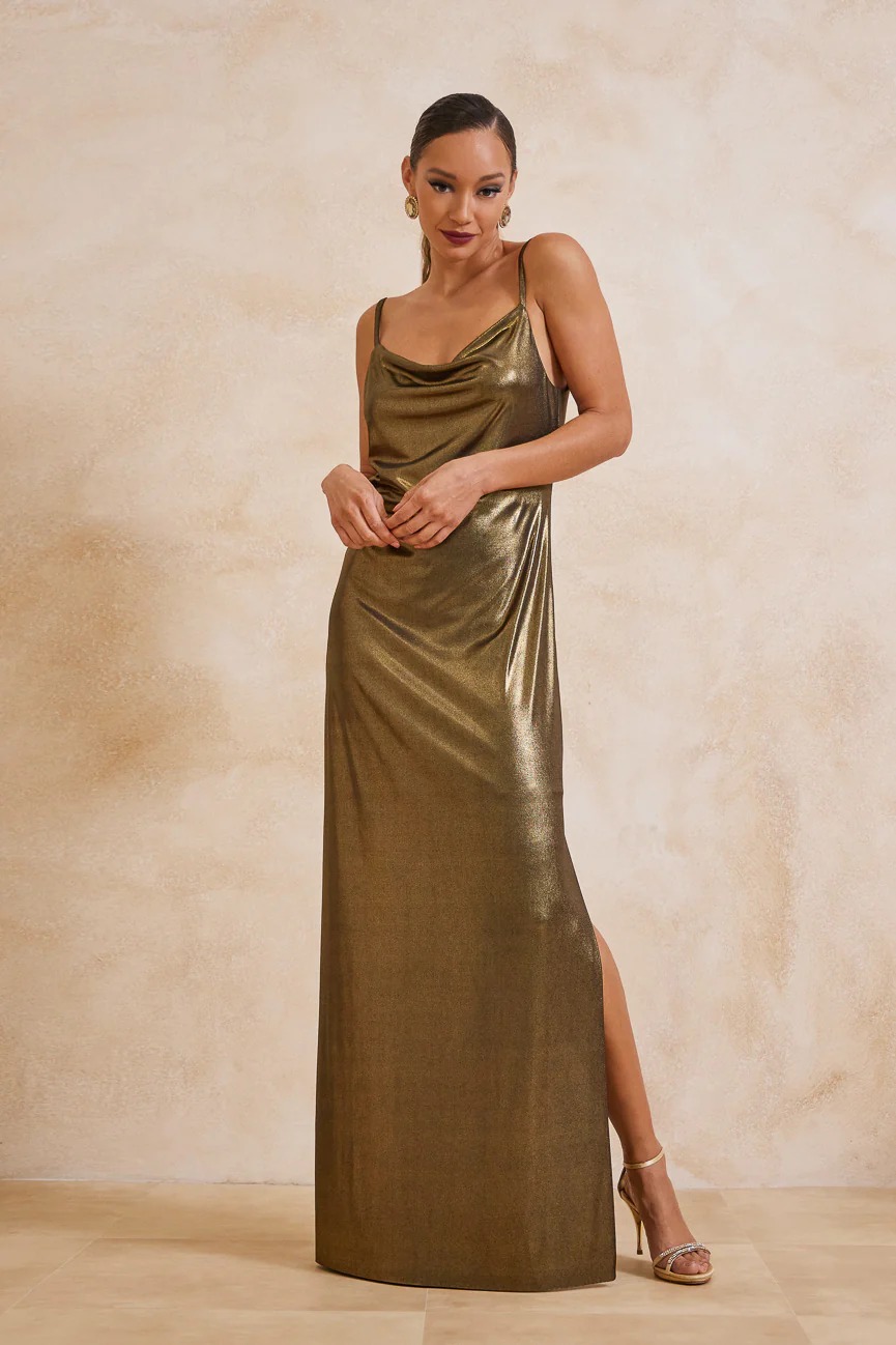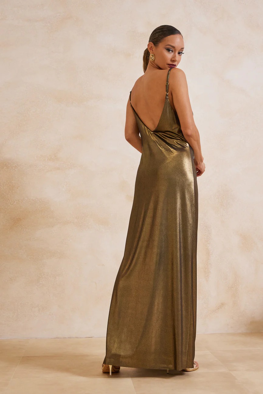 Μακρύ φόρεμα. Ελαστικό ύφασμα, μεταλιζέ.
