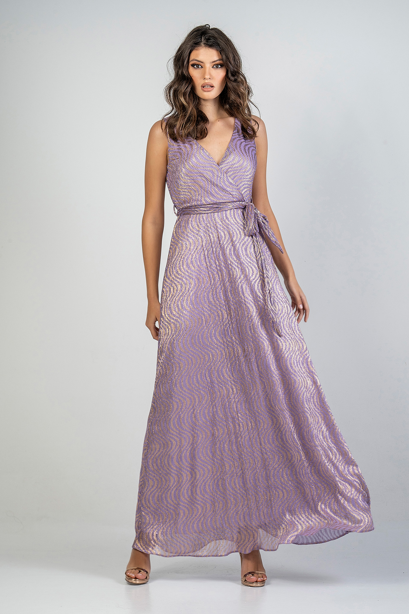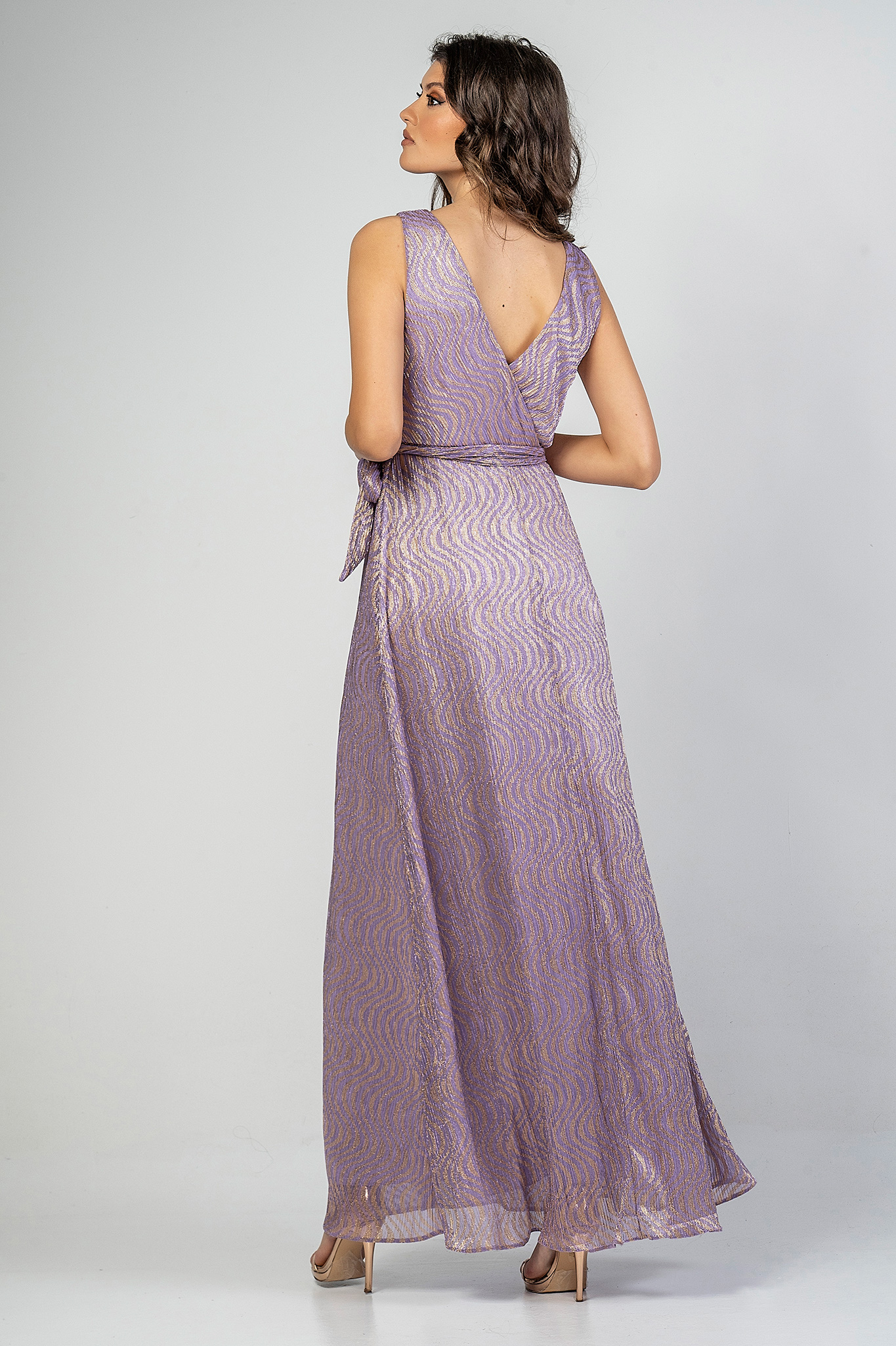 Φόρεμα cocktail σε lurex πλισέ ύφασμα κρουαζέ εμπρός και πίσω με extra ύφασμα για μανίκι.