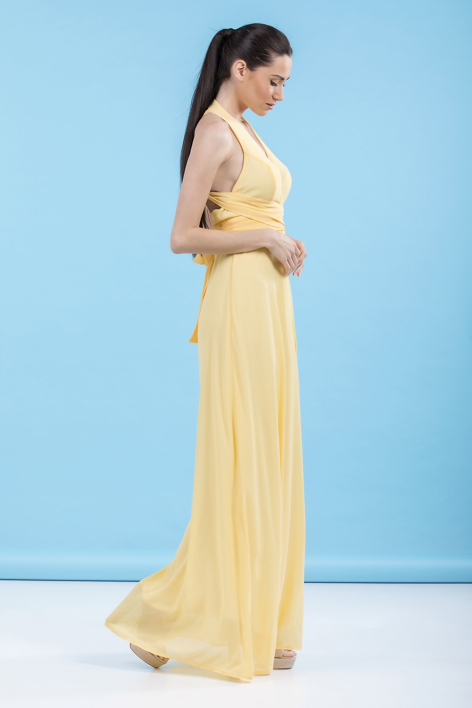 Φόρεμα maxi με πολυμορφικές τιράντες που δένουν