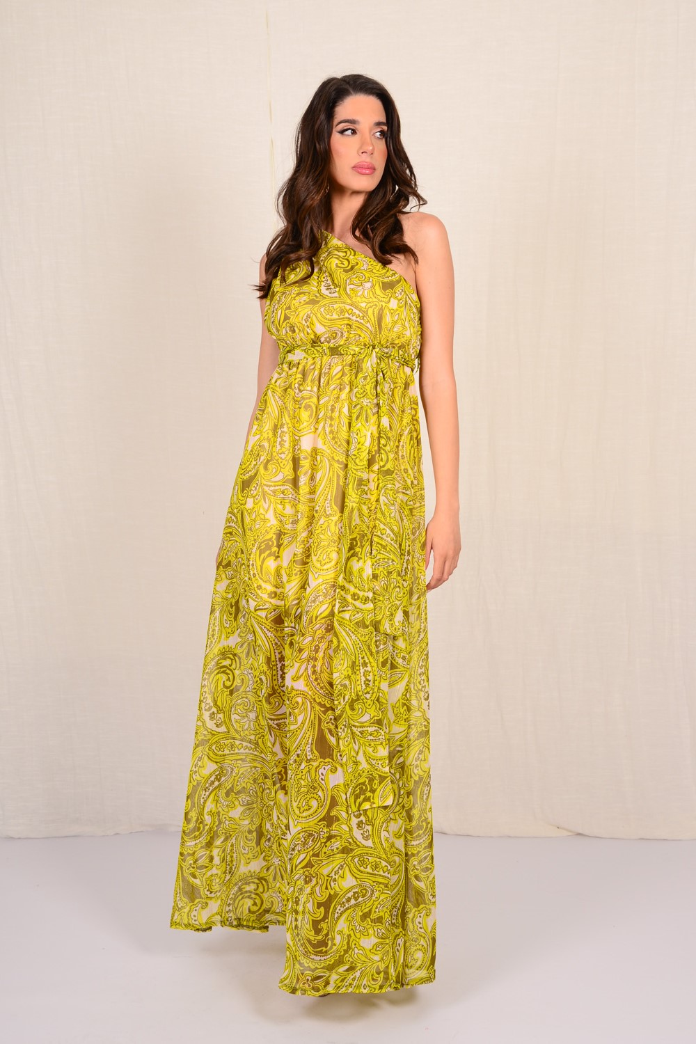 Φόρεμα Maxi εμπριμέ με lurex κλωστή