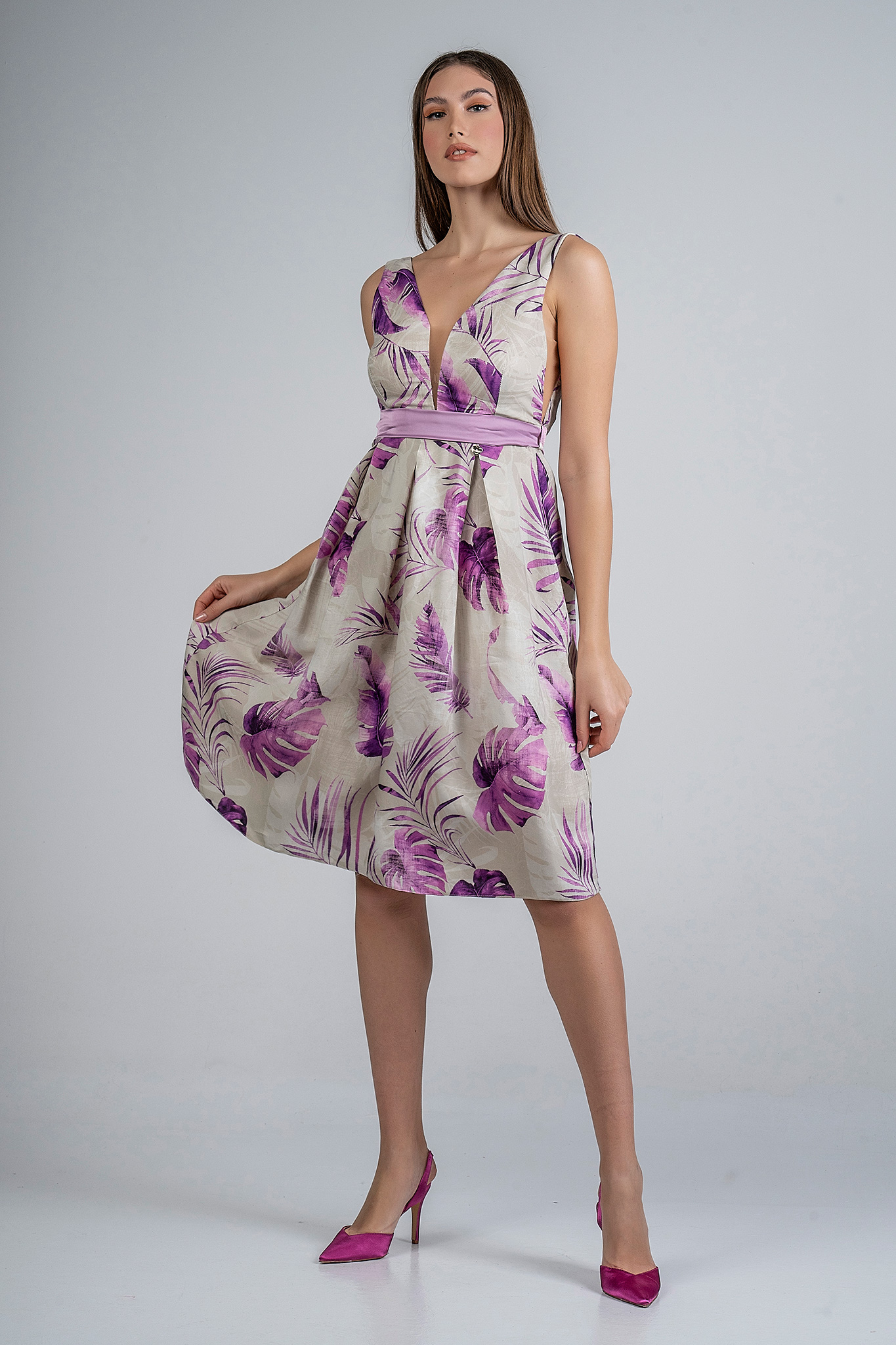 Φόρεμα midi floral με ζώνη