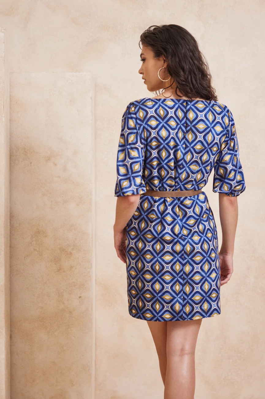 Κλείσιμο στην πλάτη με κουμπί. Ζώνη στην μέση.