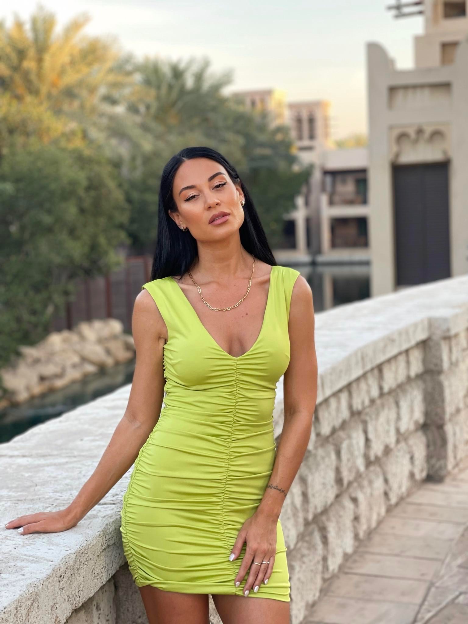 Φόρεμα μίνι. Ελαστικό ύφασμα. Εφαρμοστό με άνετη κίνηση.