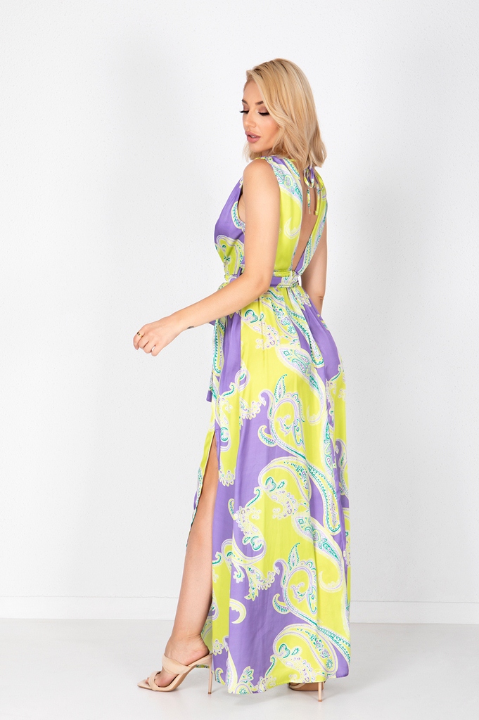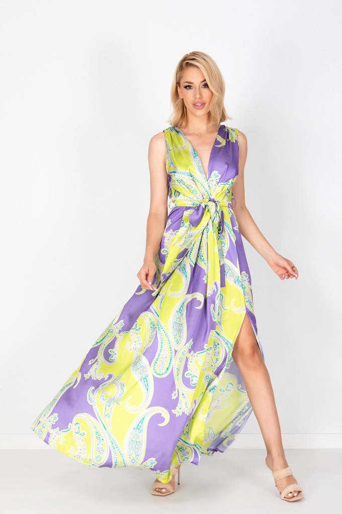 ​Φόρεμα maxi σατέν. Εμπριμέ σχέδιο.