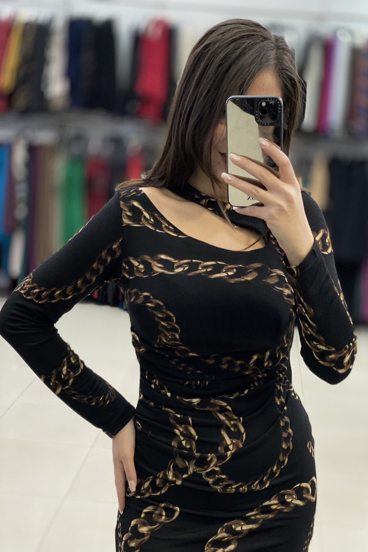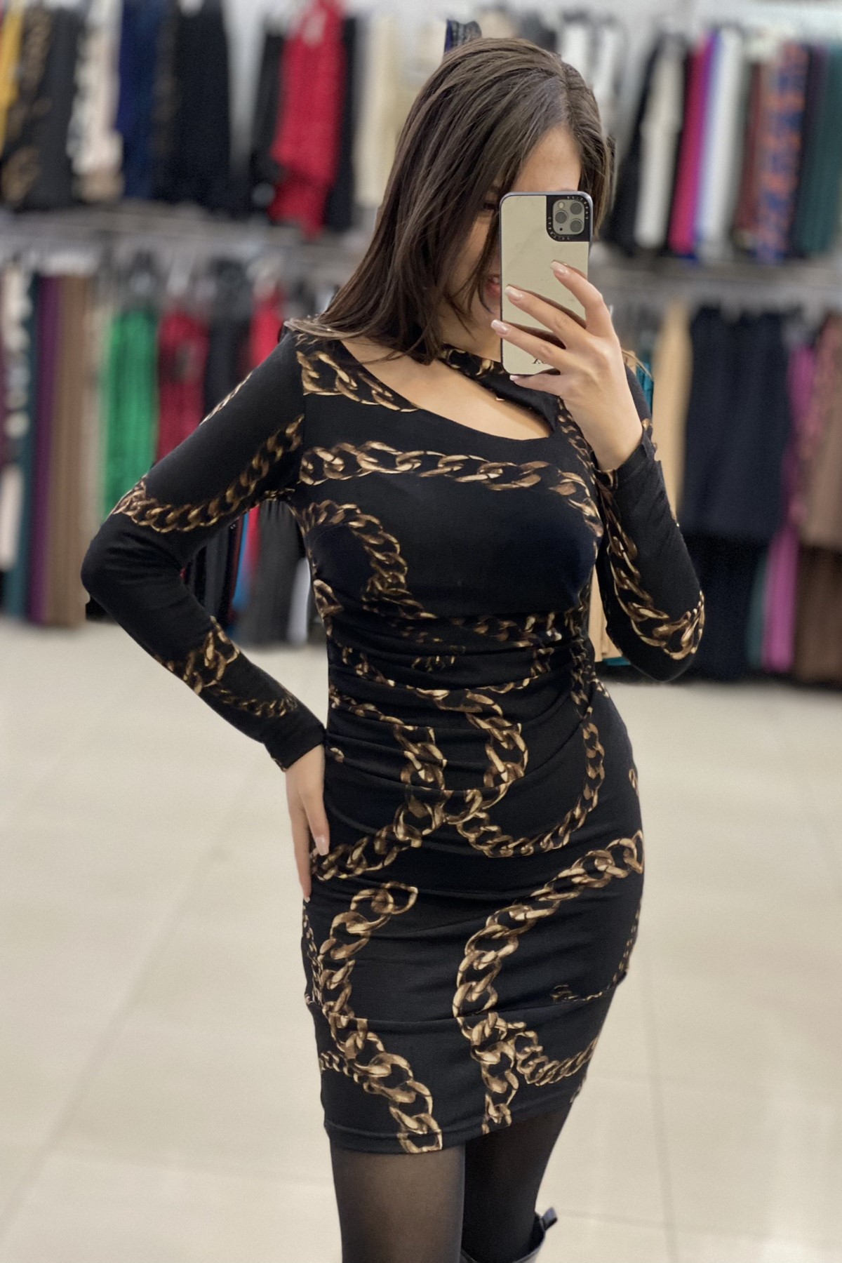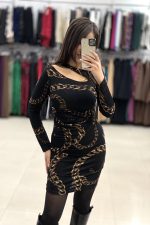 Mini φόρεμα πλεκτό, εμπριμέ. Άνετη εφαρμογή.