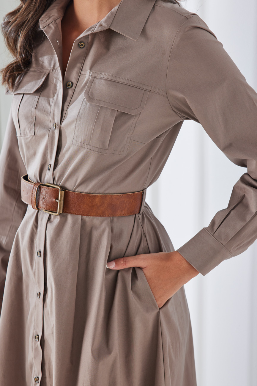 Κανονική εφαρμογή. Τσέπες στο μπούστο και πλαϊνές. Ζώνη στην μέση.