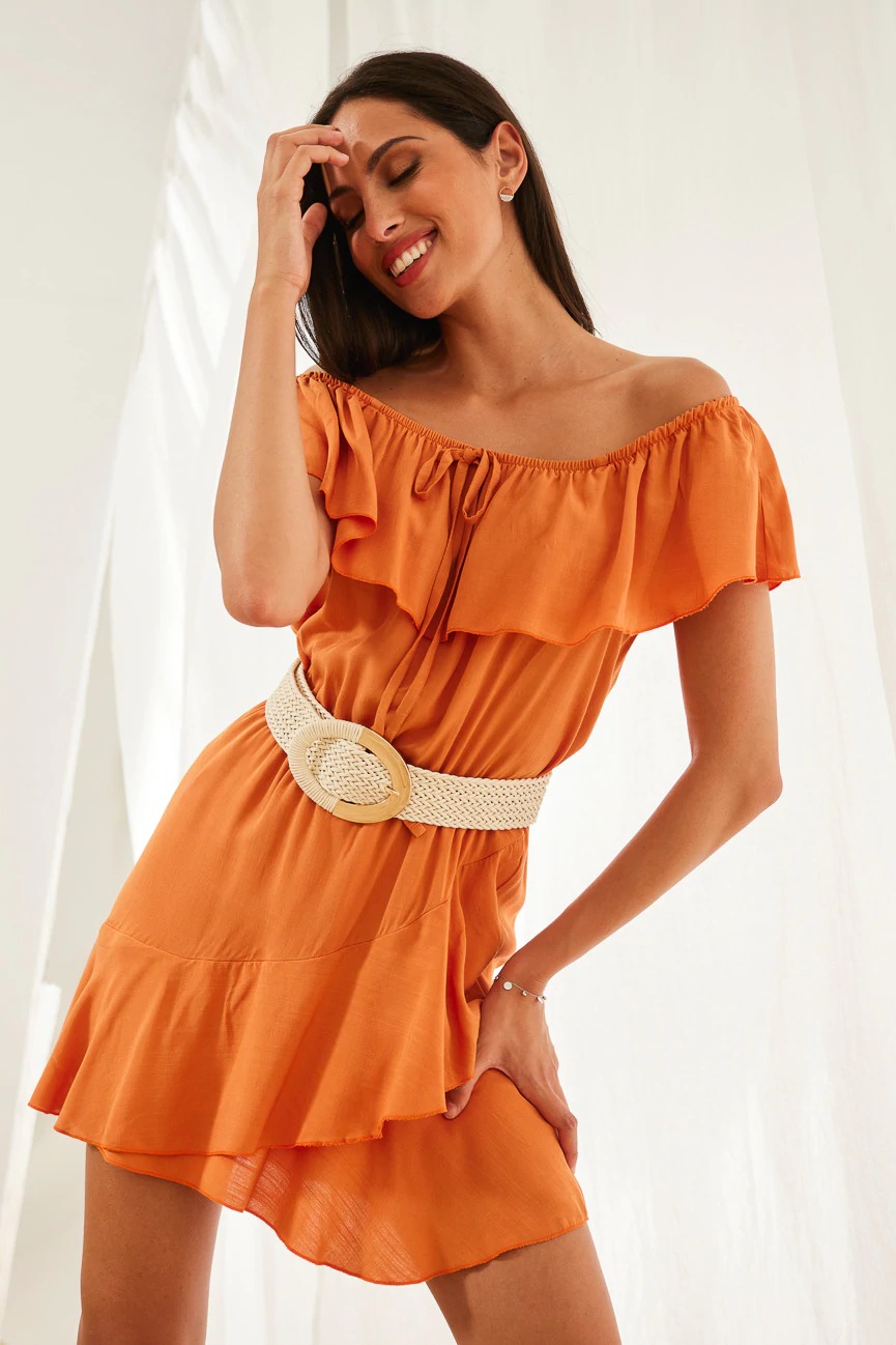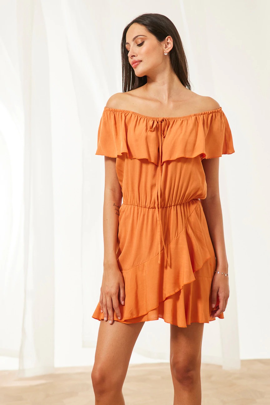 Ολόσωμη φόρμα-φόρεμα με βολάν. Εσωτερικό σορτς και λάστιχο στη μέση.