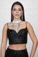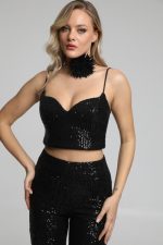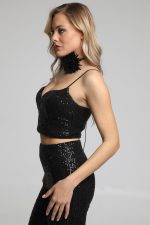 Μπούστο με παγιέτα. Φερμουάρ στην πλάτη.