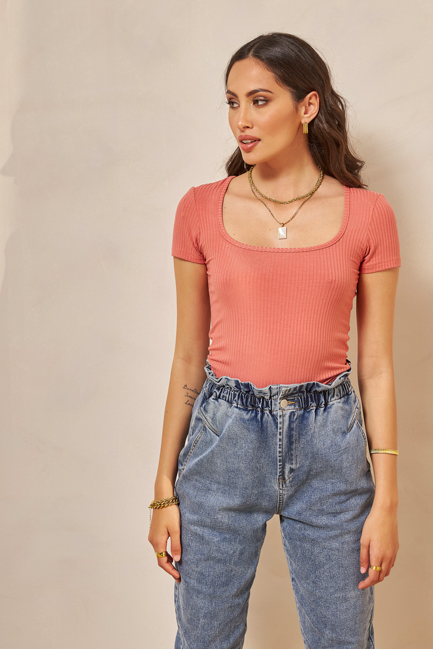 Κοντoμάνικο με τετράγωνη λαιμόκοψη.