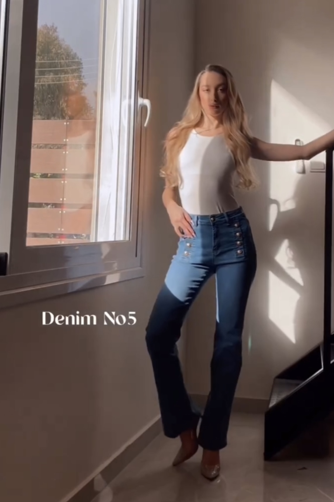 Denim παντελόνι καμπάνα με διακοσμητικά κουμπιά στο μπροστινό μέρος