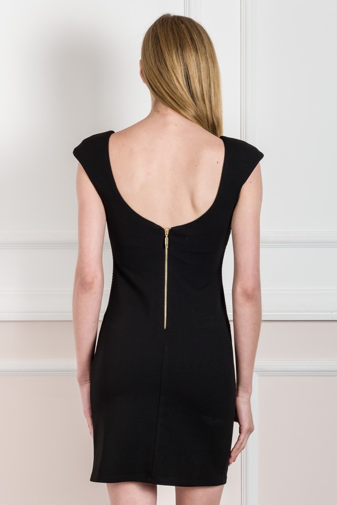 Mini φόρεμα με λαχούρια από βελούδο στο μπροστινό μέρος. Έχει ανοιχτή πλάτη και κλείσιμο με φερμουάρ.