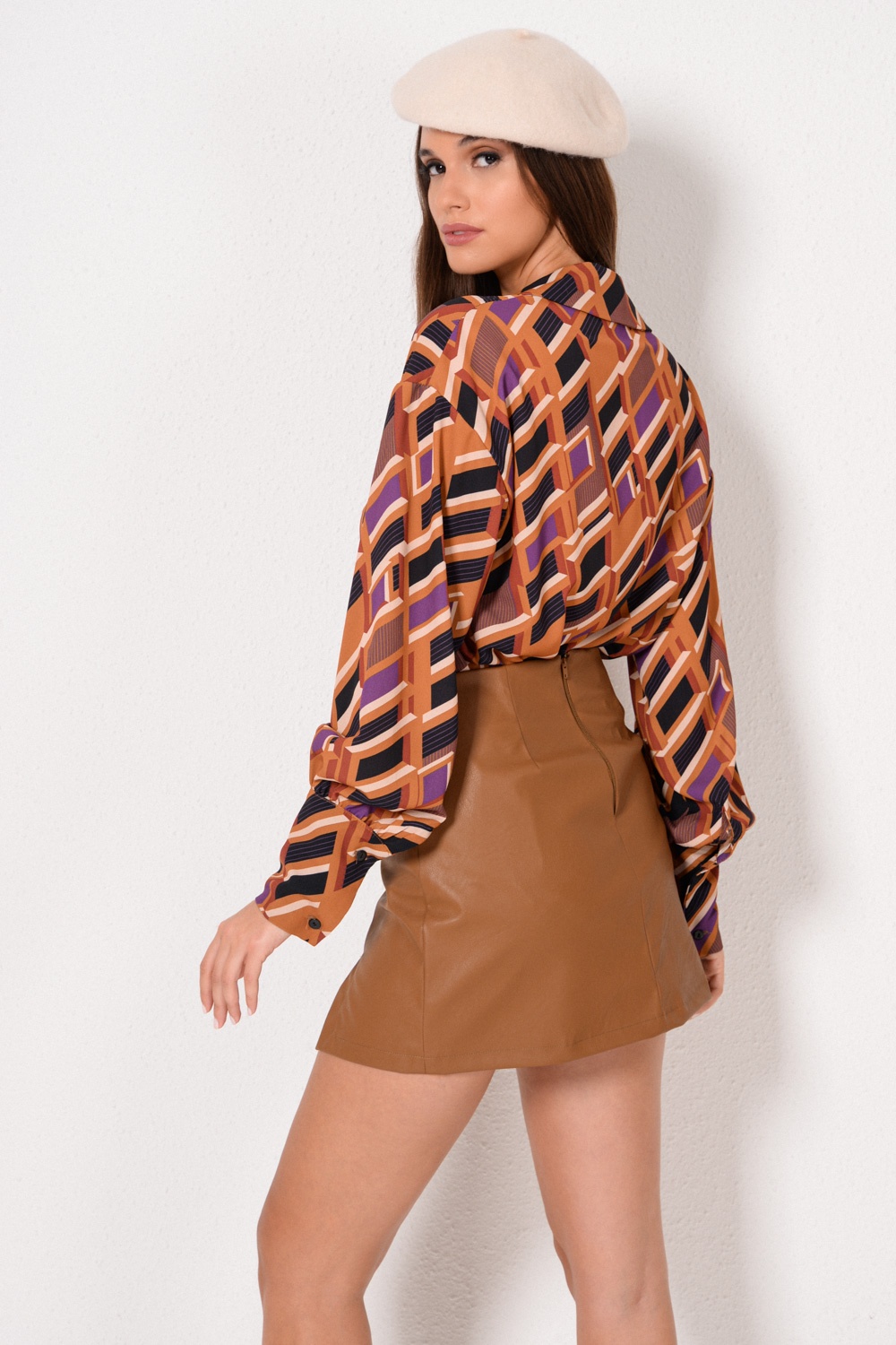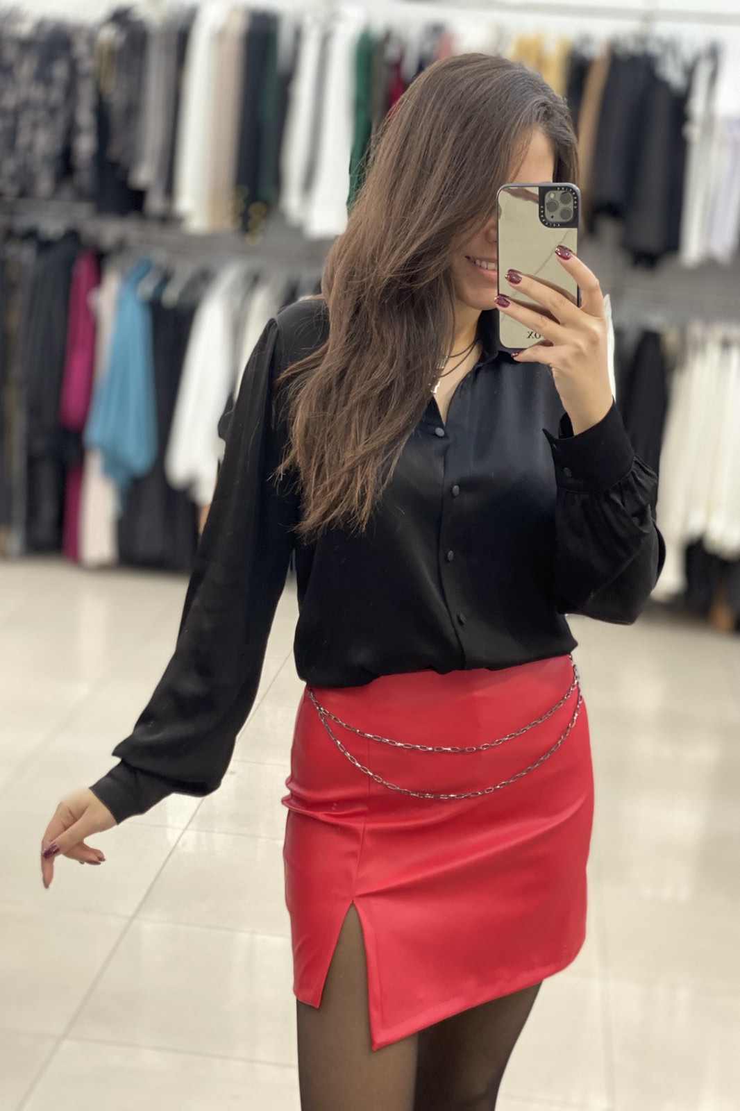 Φούστα mini δερματίνη με διακοσμητική αλυσίδα