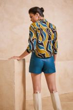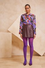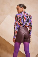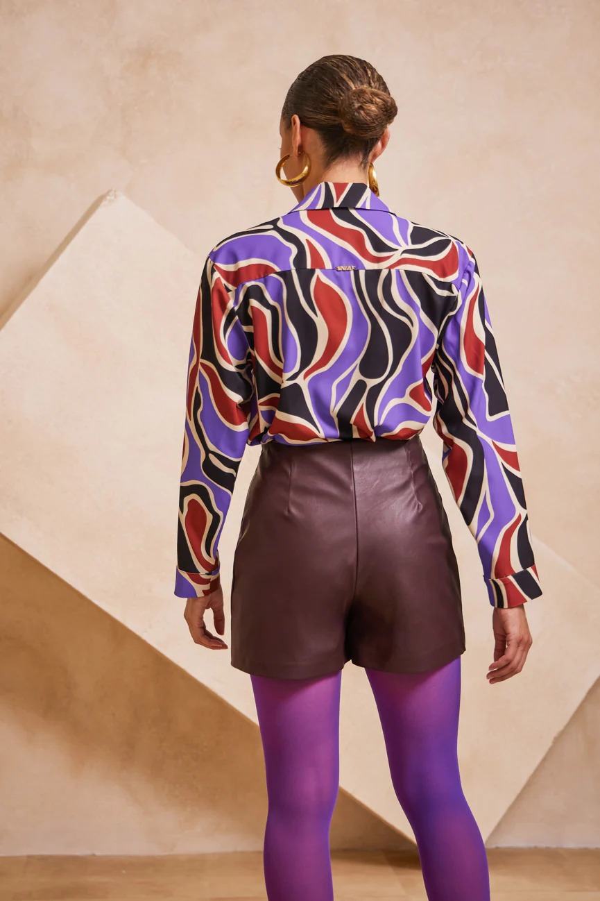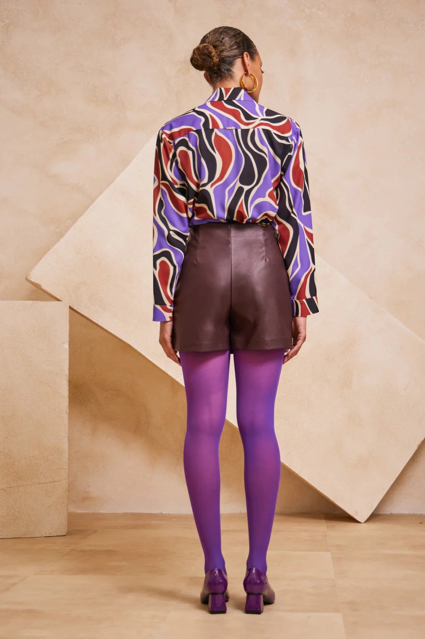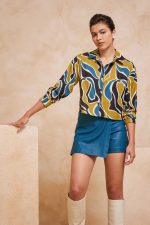 Ψηλόμεσο ζιπ κιλότ. Σταθερό ύφασμα, δερματίνη με μικρή ελαστικότητα.
