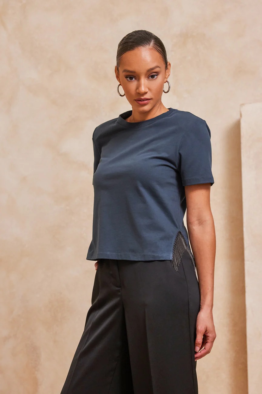 Μπλούζα κοντομάνικη. Βαμβακερό ύφασμα.