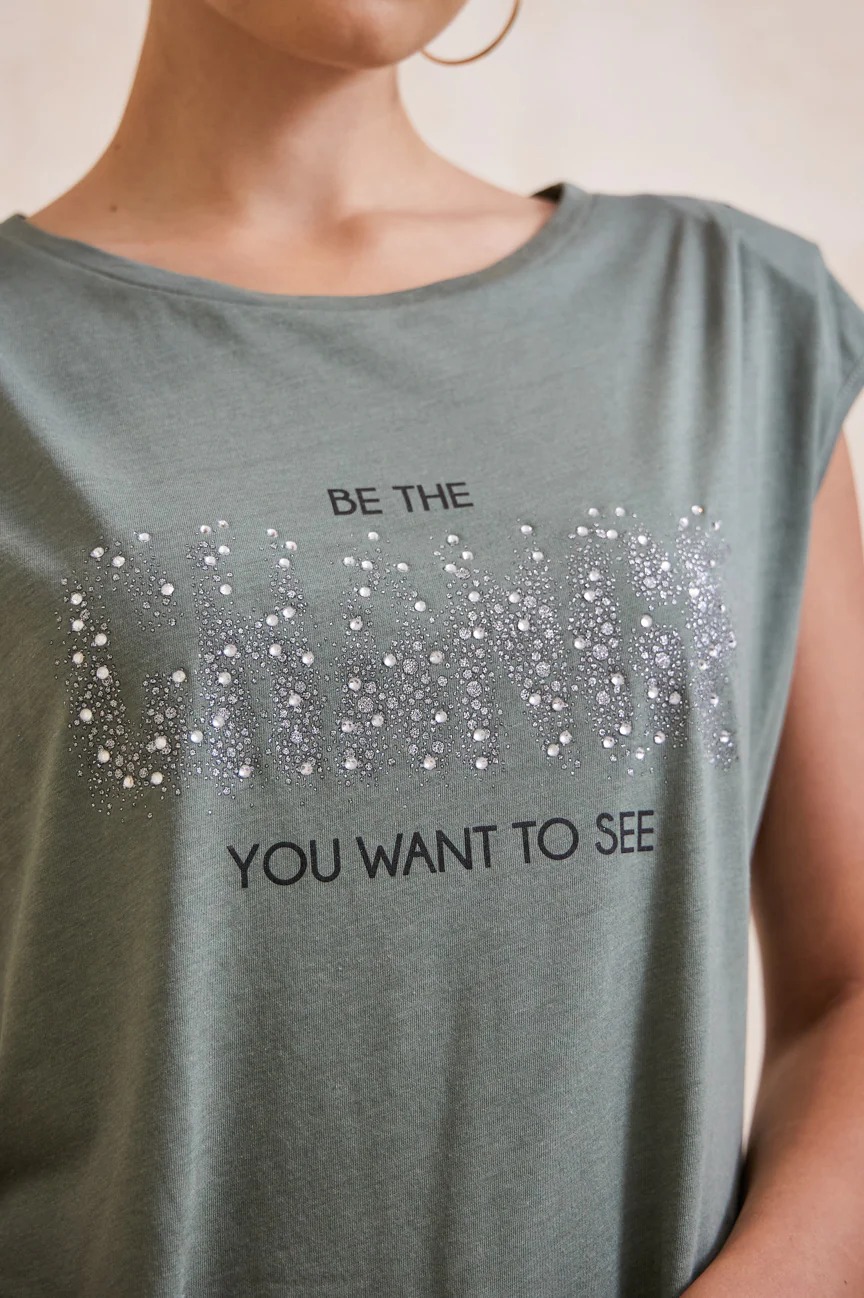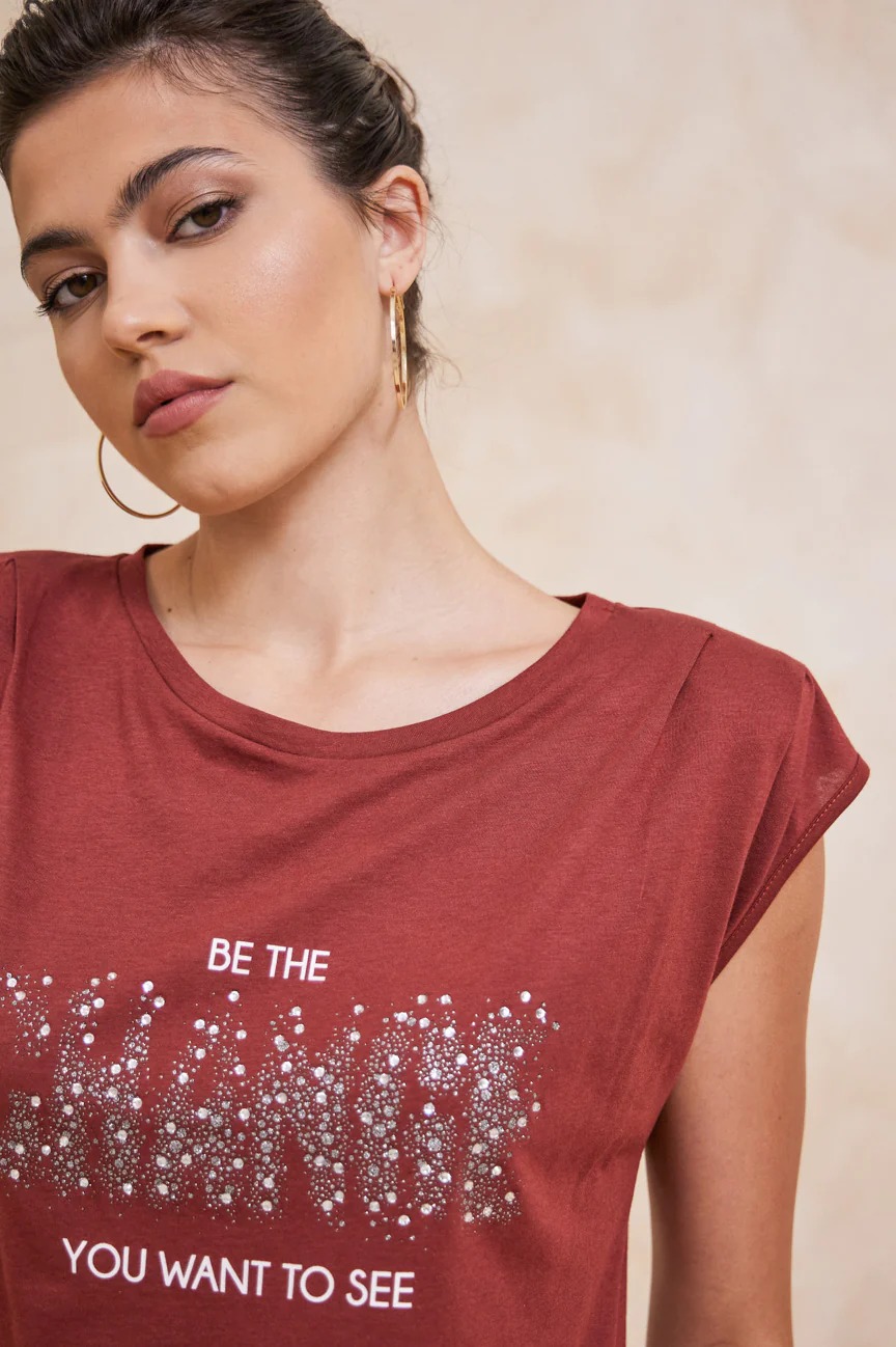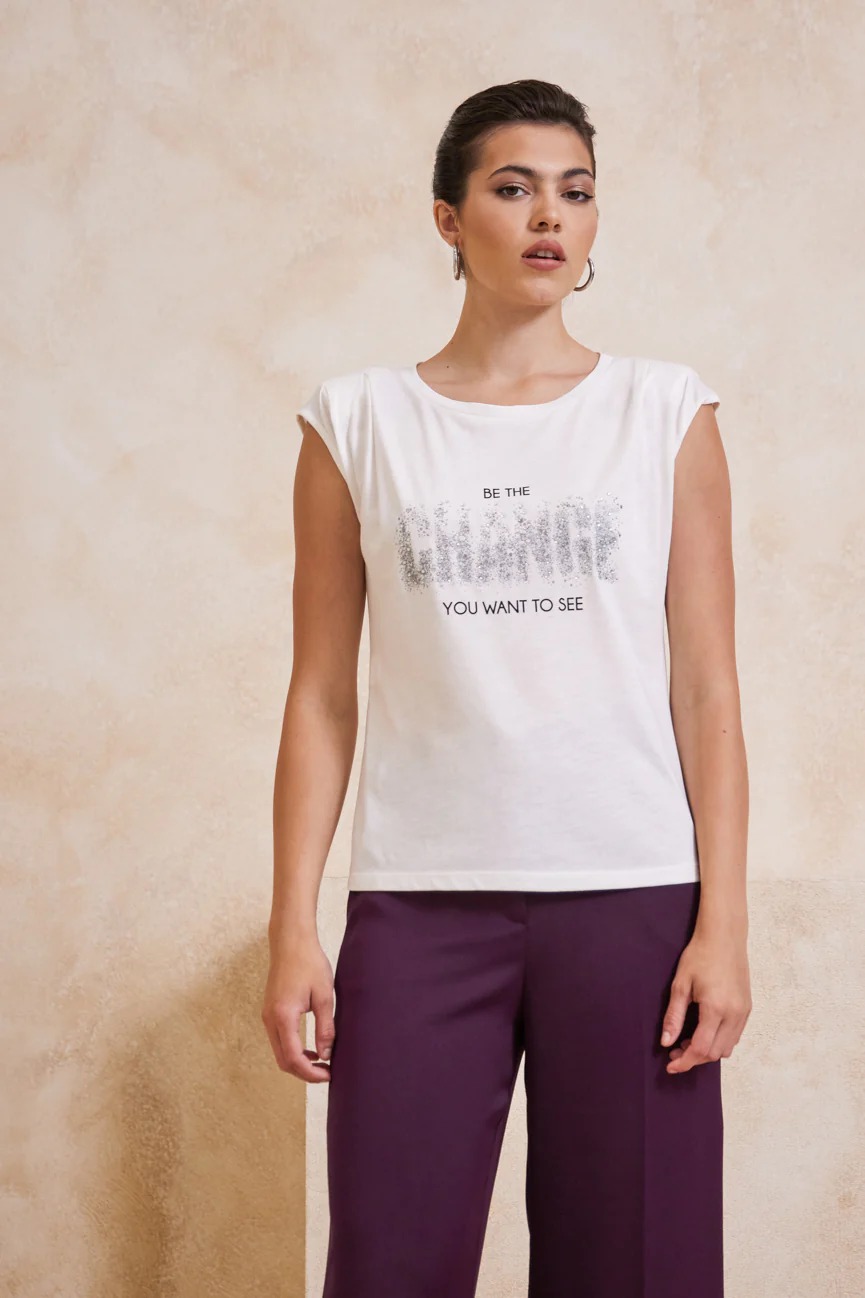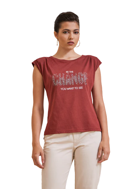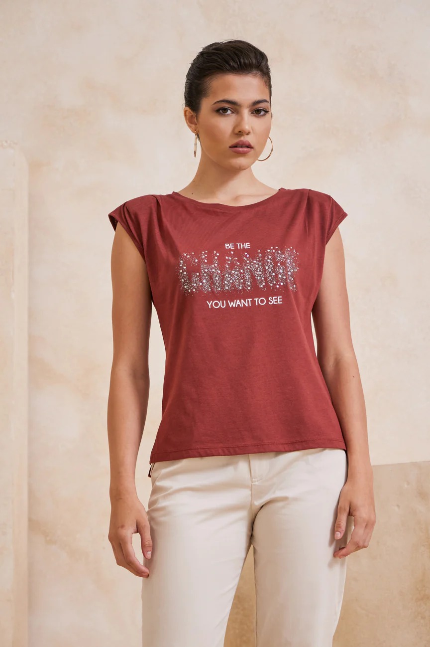 Τύπωμα με στρας. Βάτες στους ώμους.