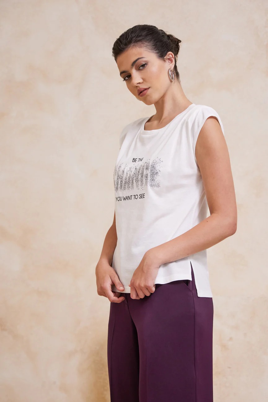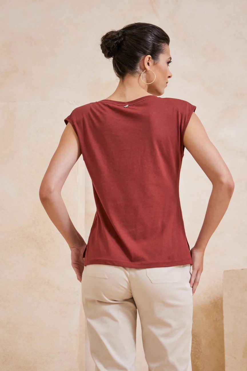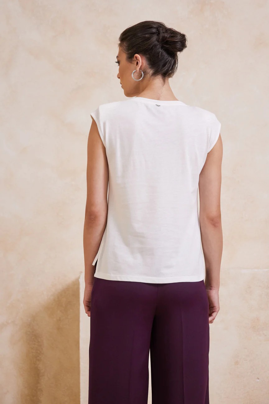 Μπλούζα αμάνικη. Σταθερό ύφασμα. Ίσια γραμμή, με άνετη κίνηση.